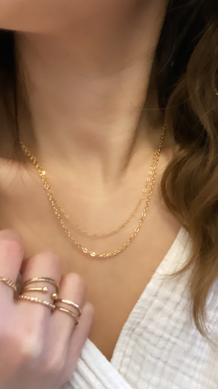 Take a piece of string and layer it around your neck. Place the string on a ruler to get your neck measurement. Please review the size of the necklace to ensure the proper fit.