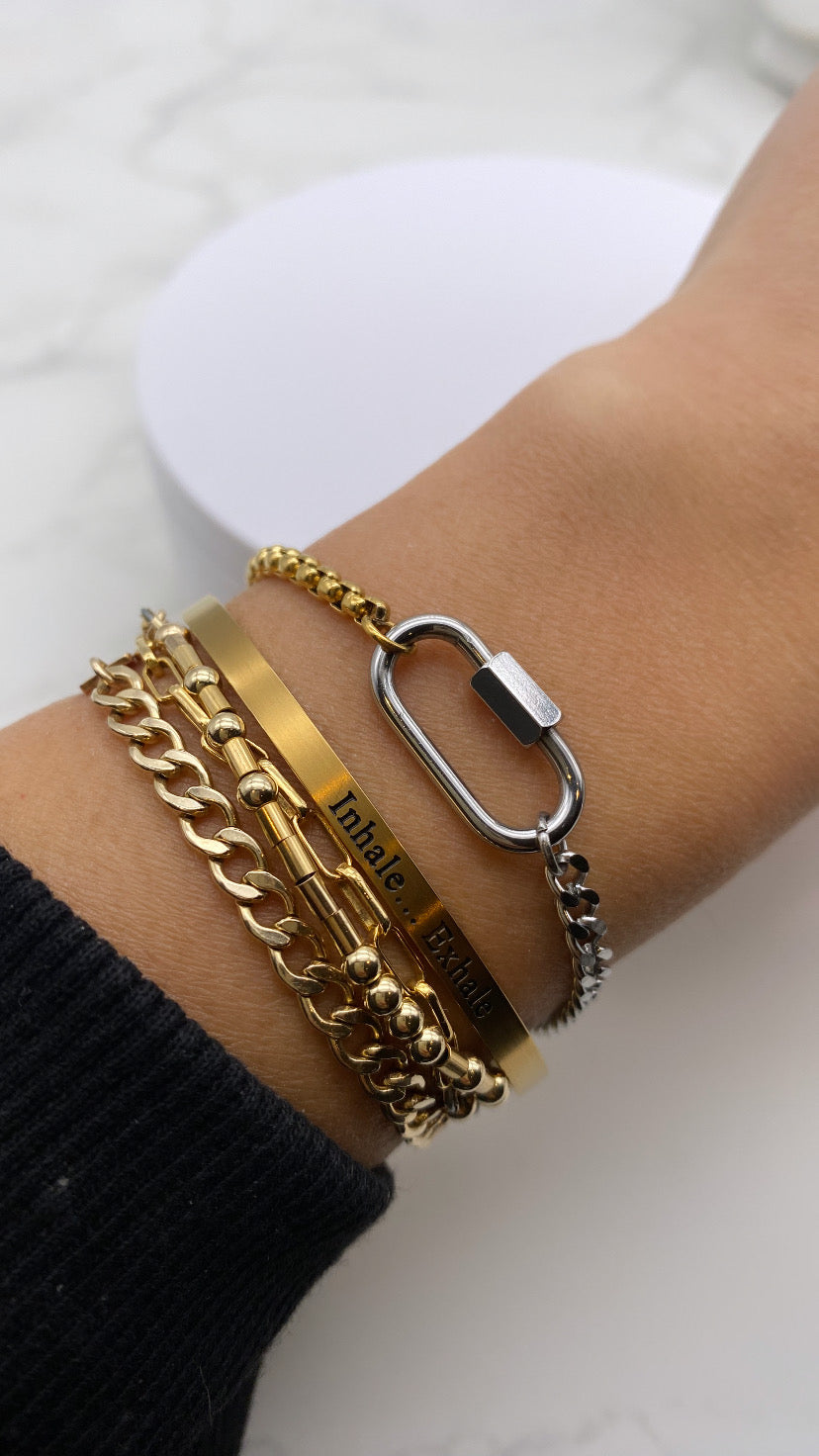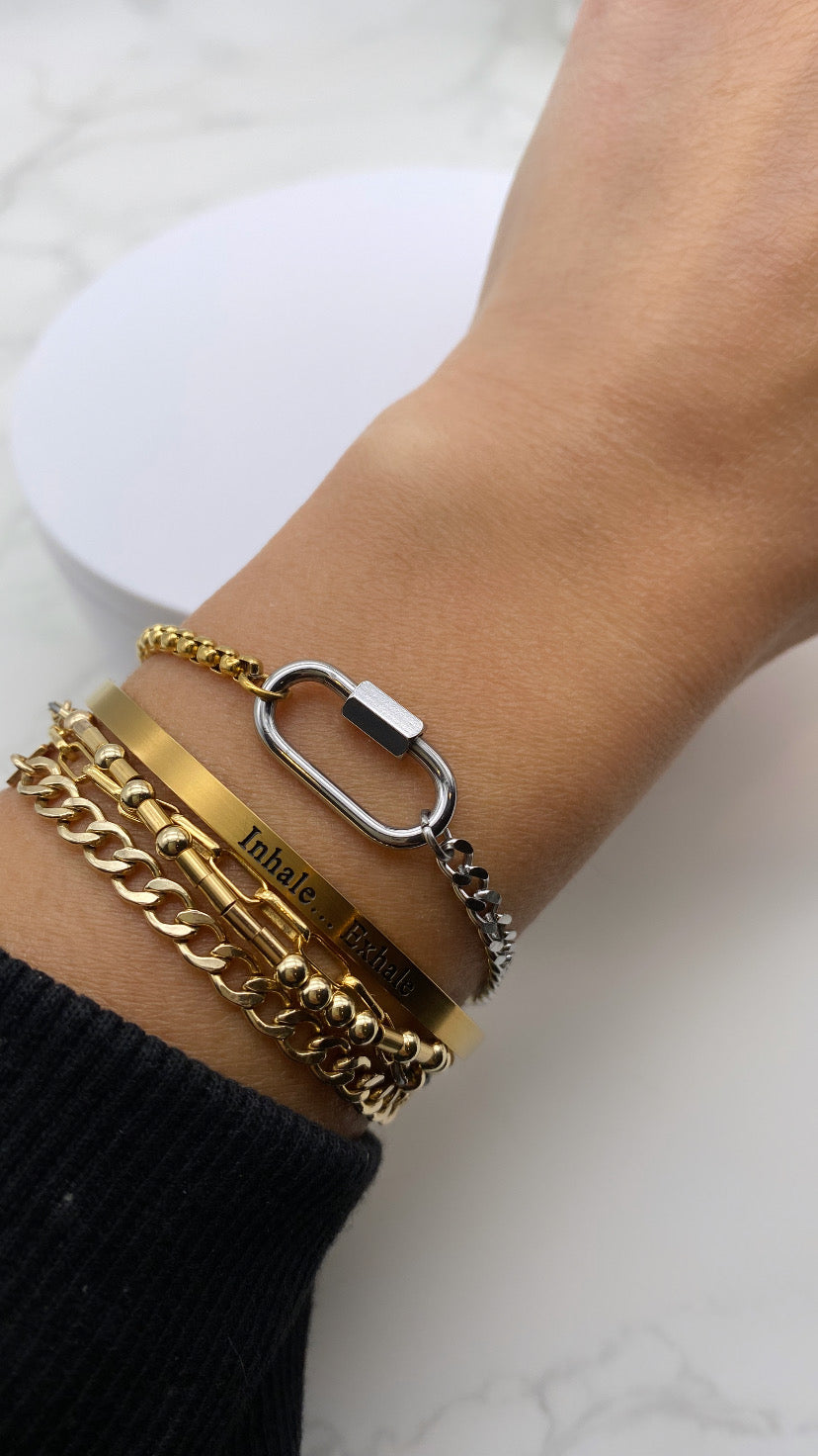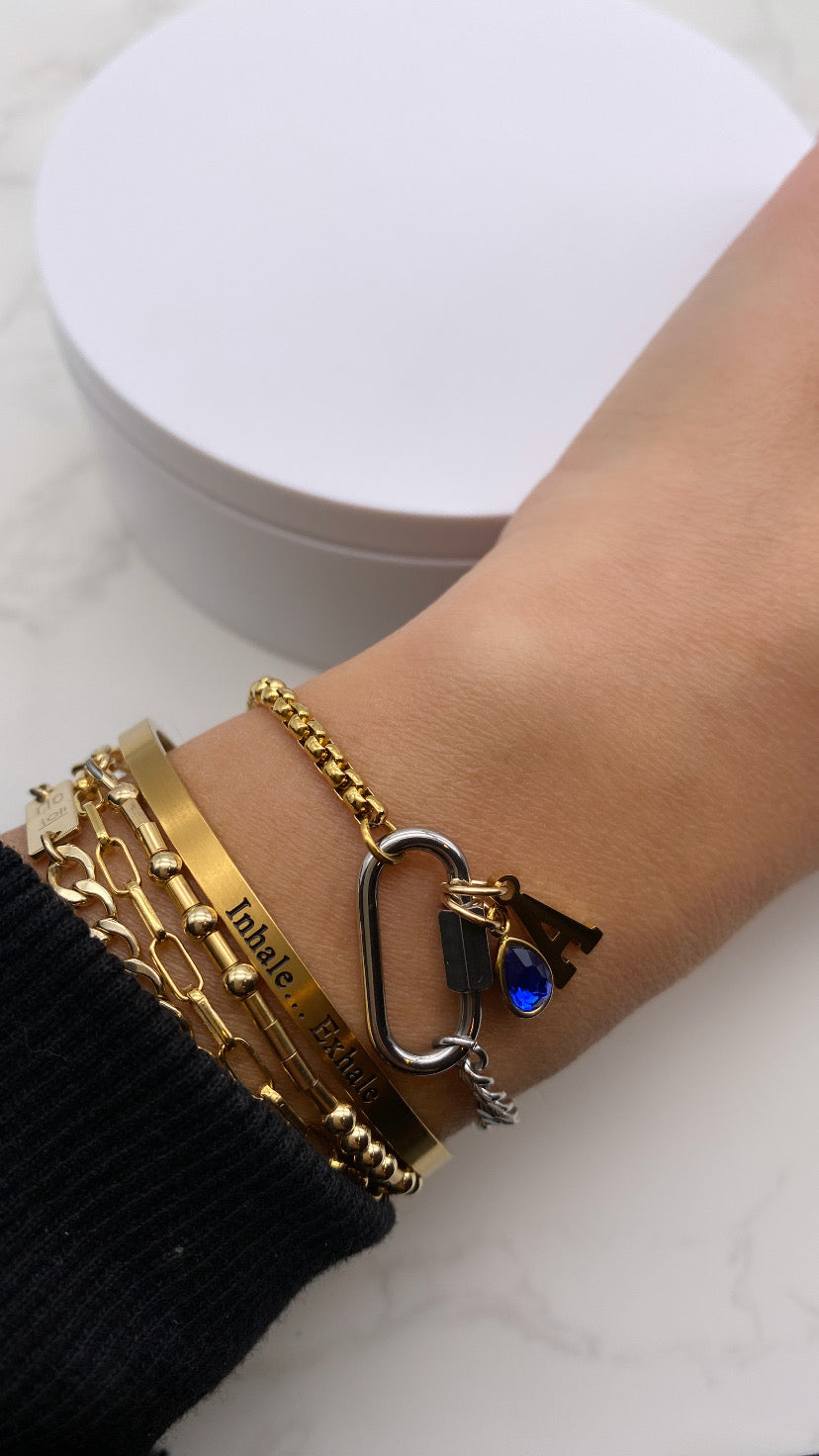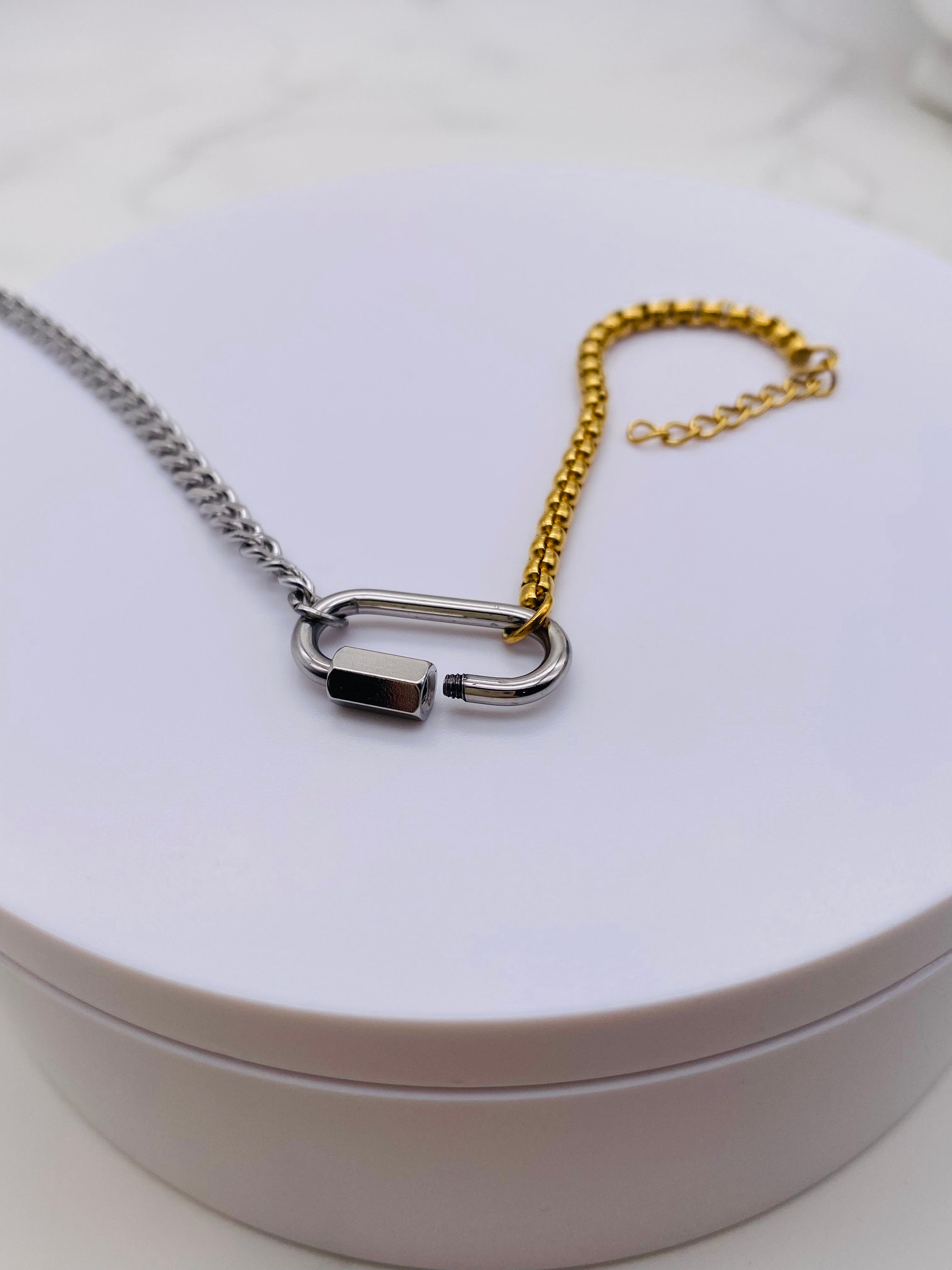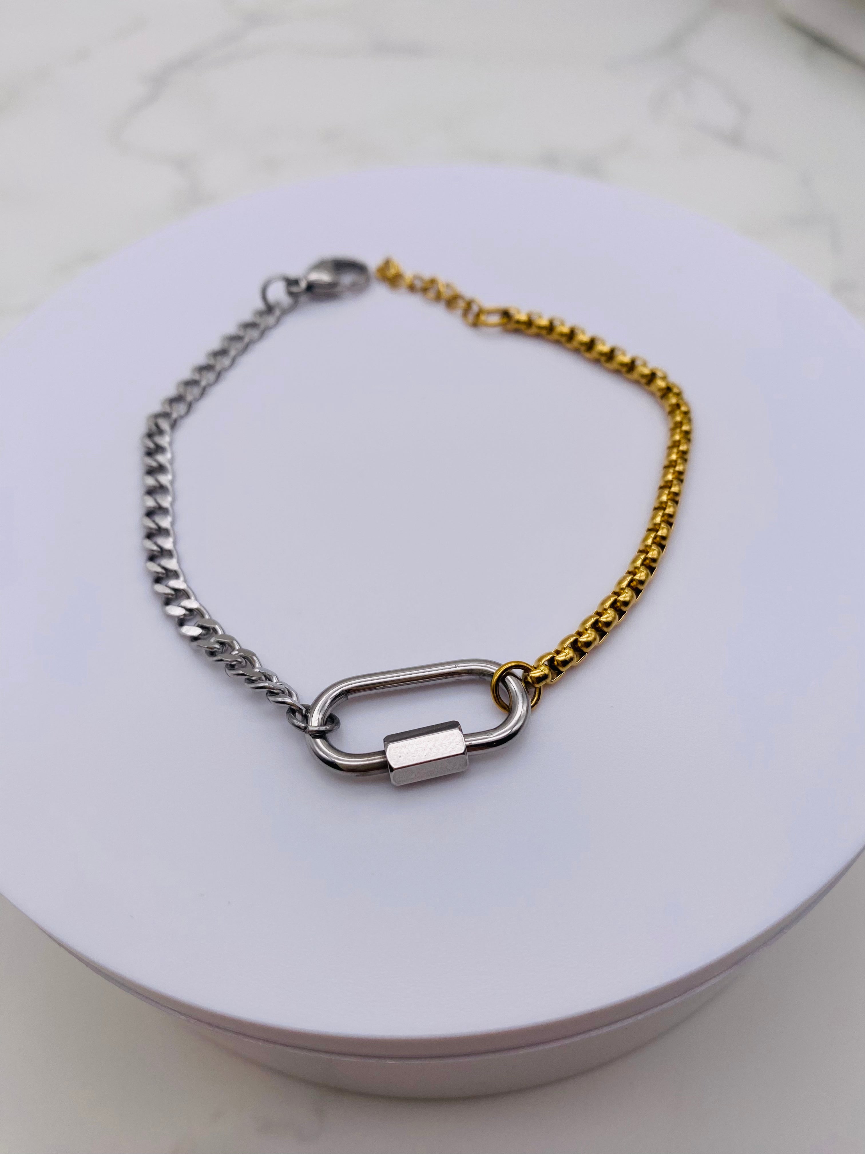 2 Tone Curb with Box chain Charm Holder BRACELET
