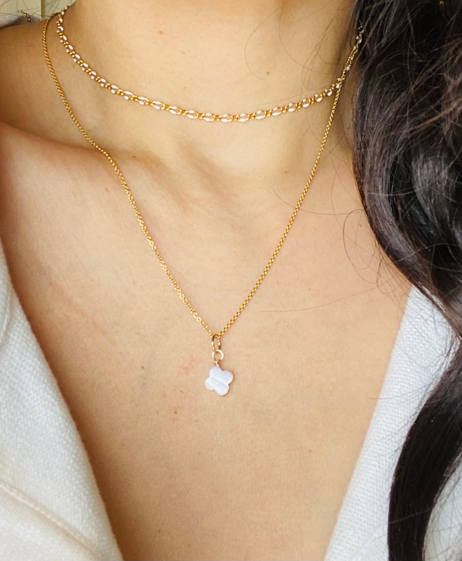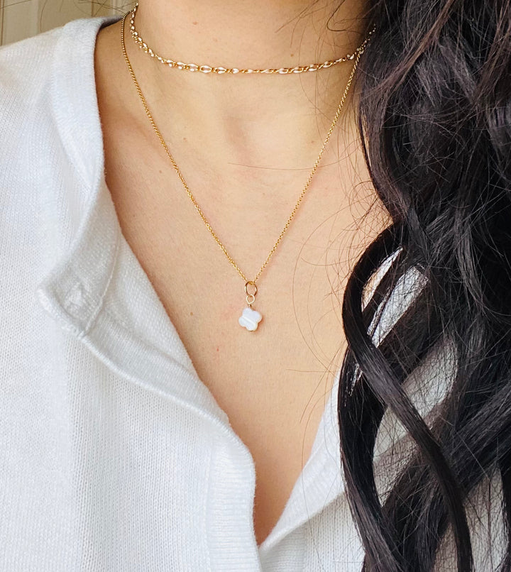 4 Leaf Clover Mother of Pearl Charm - Gold Filled