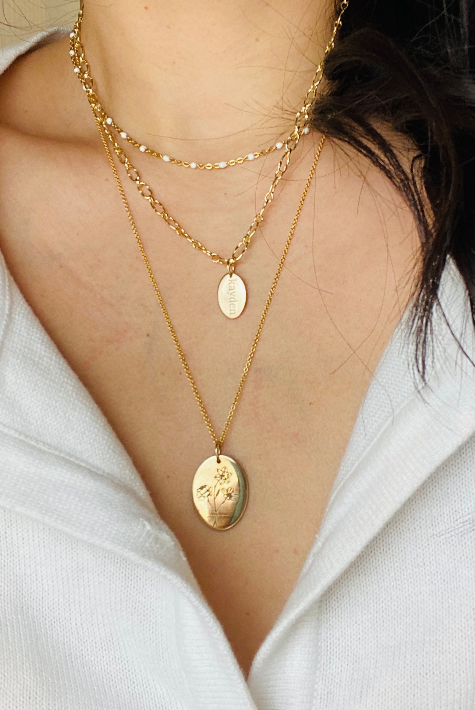 Take a piece of string and layer it around your neck. Place the string on a ruler to get your neck measurement. Please review the size of the necklace to ensure the proper fit.
