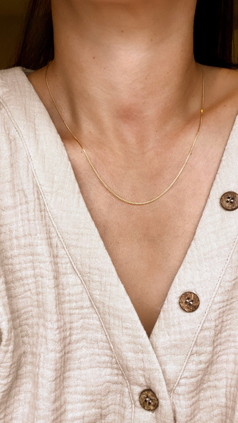 Take a piece of string and layer it around your neck. Place the string on a ruler to get your neck measurement. Please review the size of the necklace to ensure the proper fit.