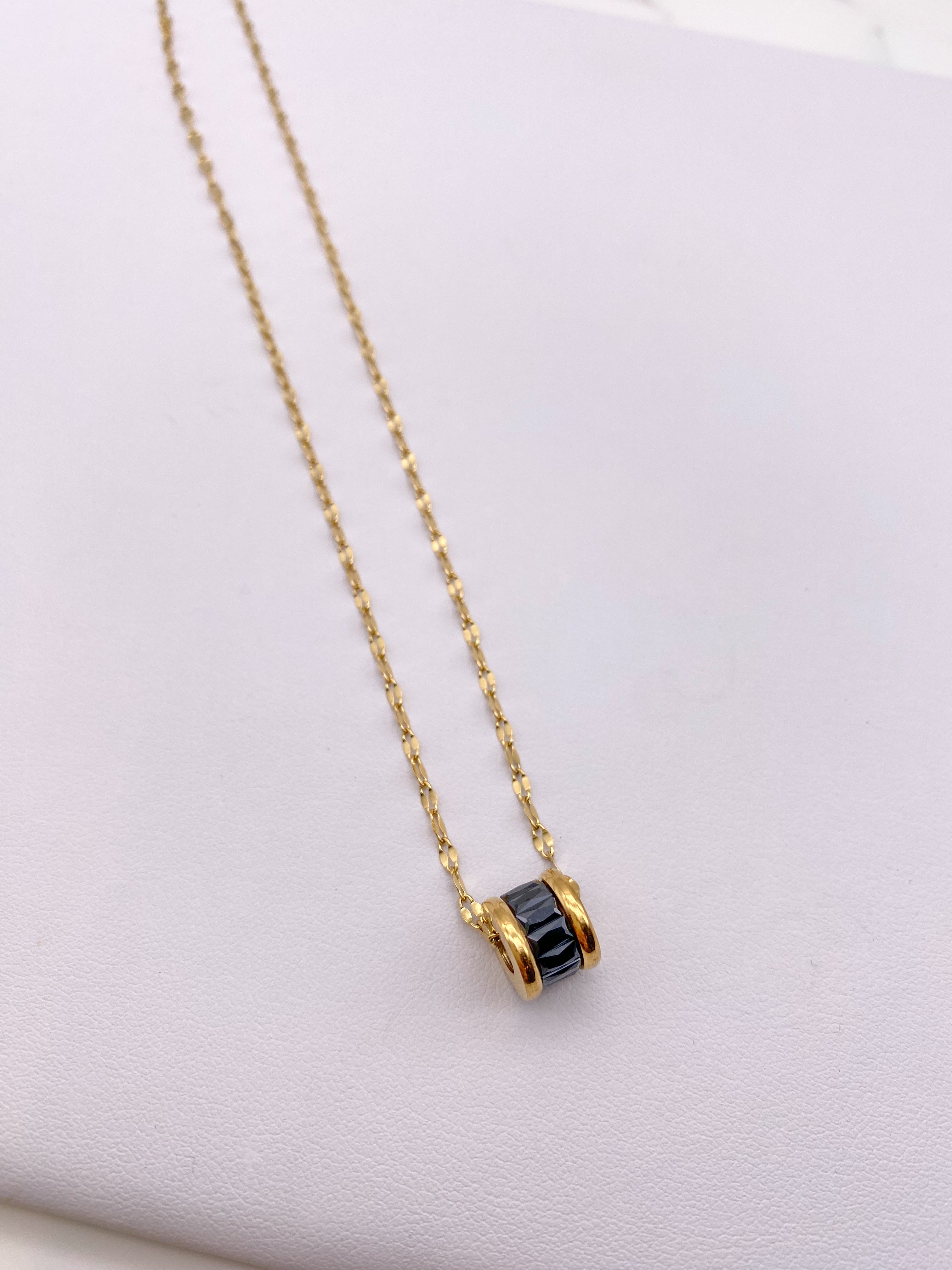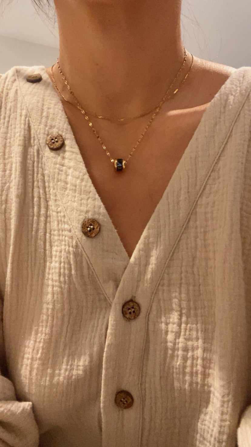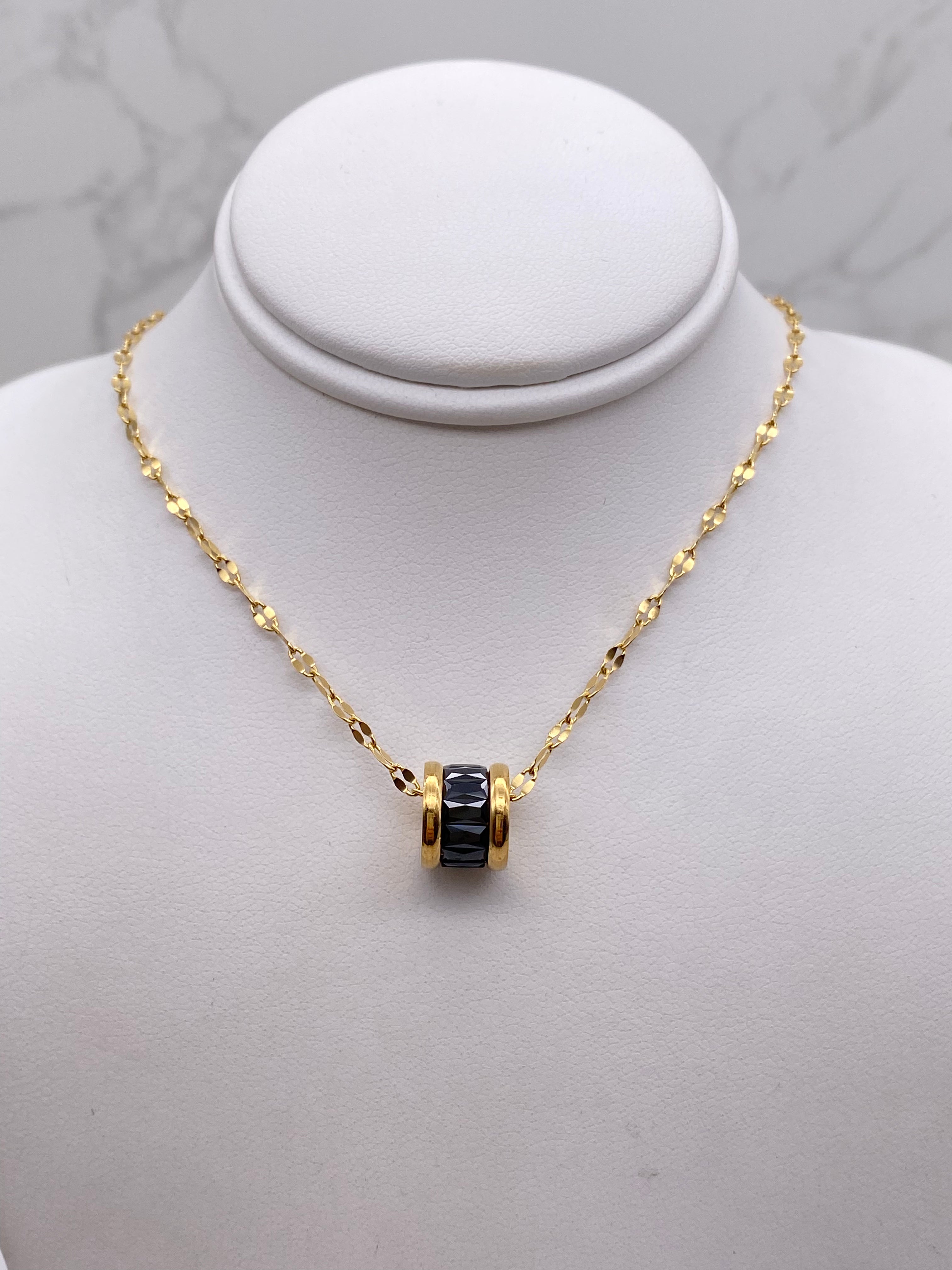 Black Gem Spacer bead with Lip Chain NECKLACE