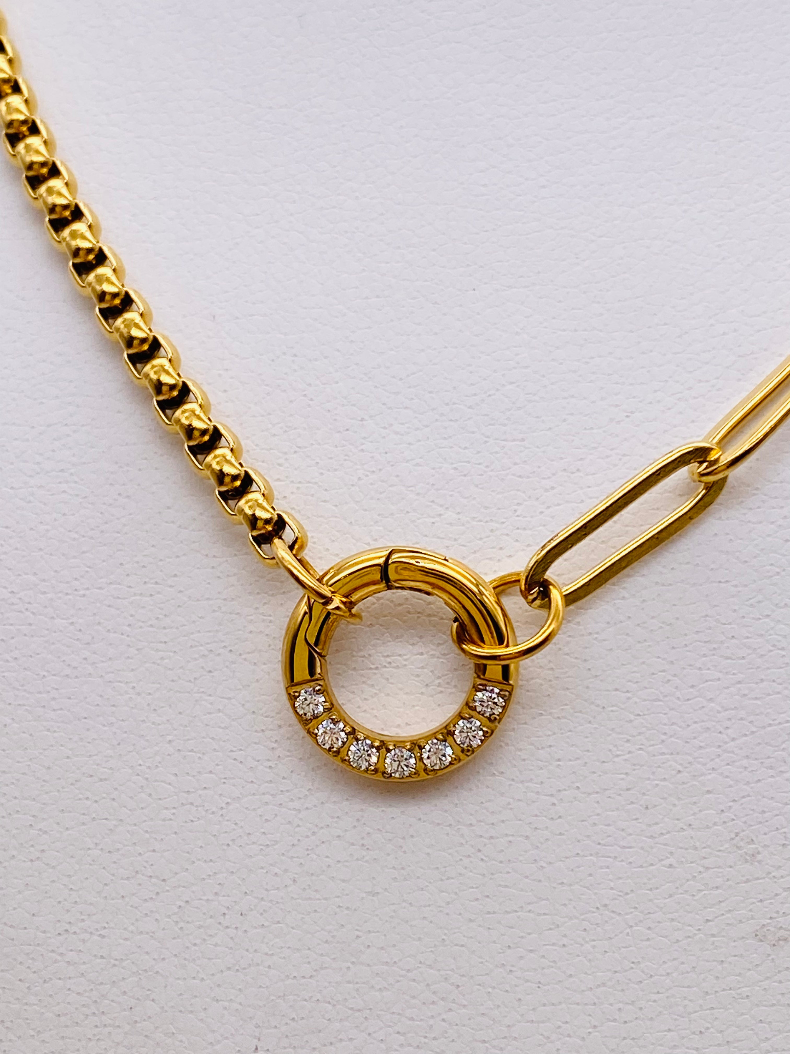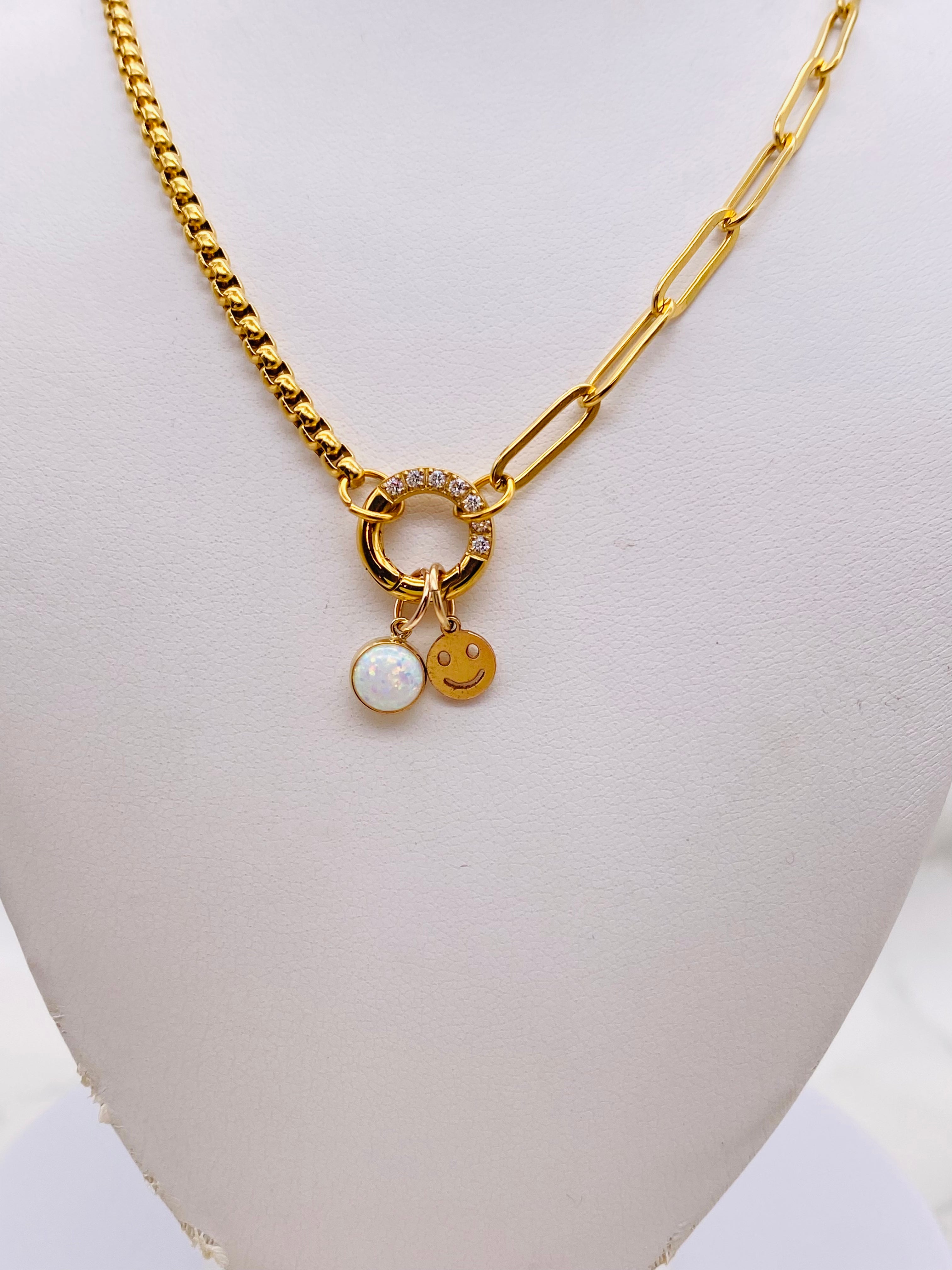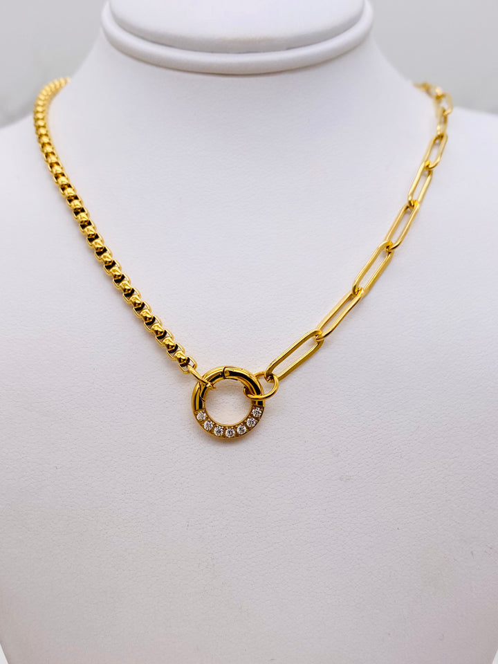 Box & Paperclip Chain CZ Charm Holder Necklace
