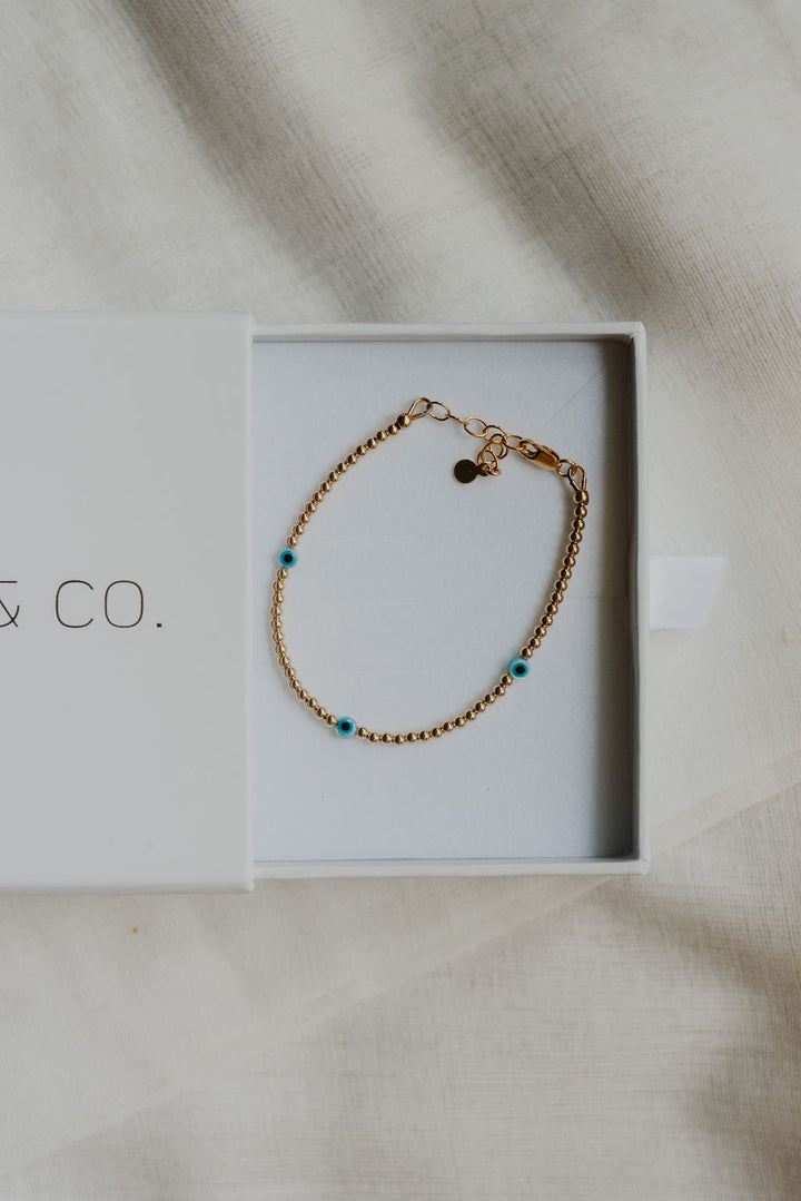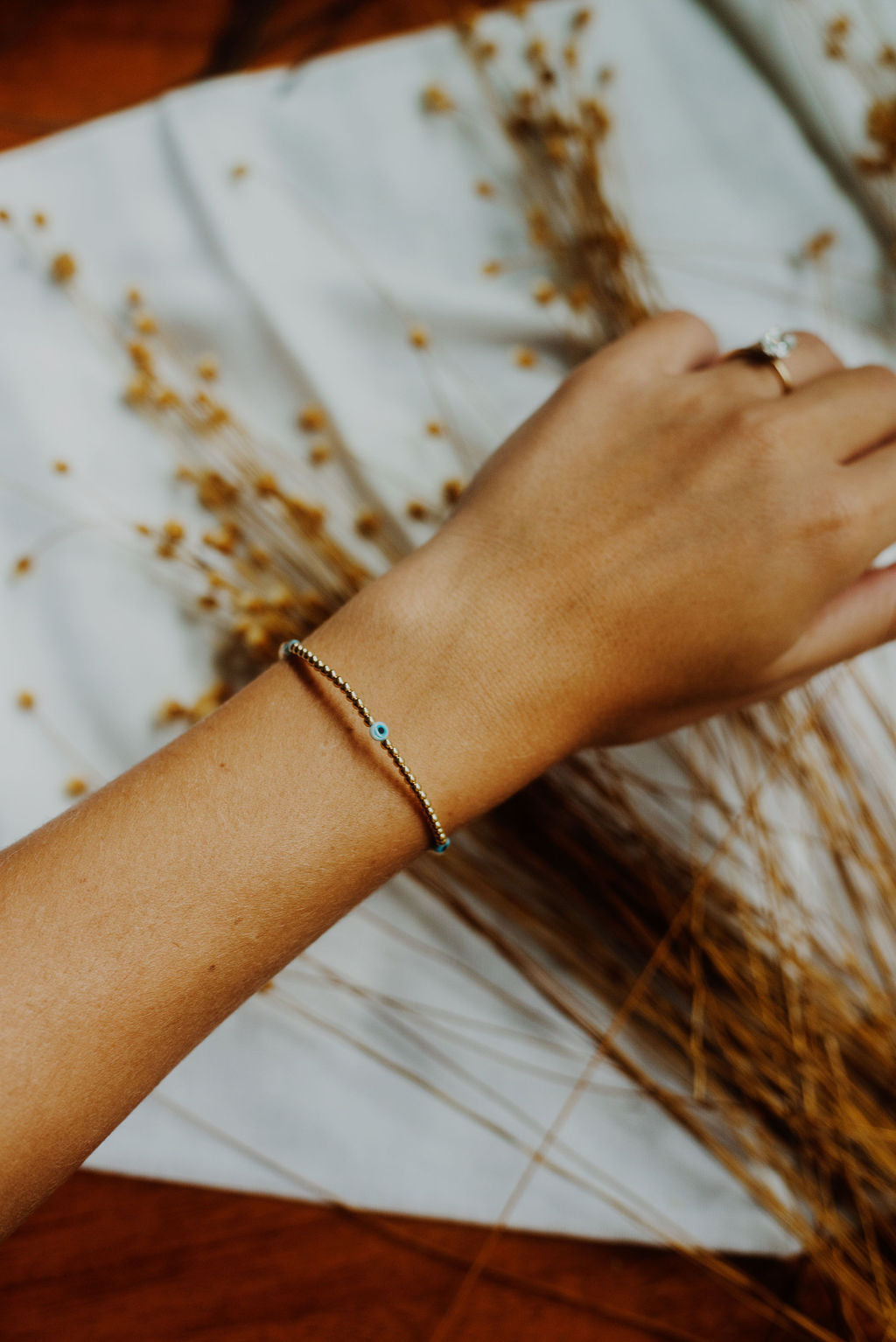 Dainty Round Evil Eye Round Mother of Pearl Bracelet