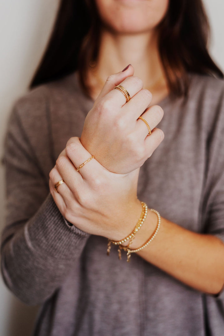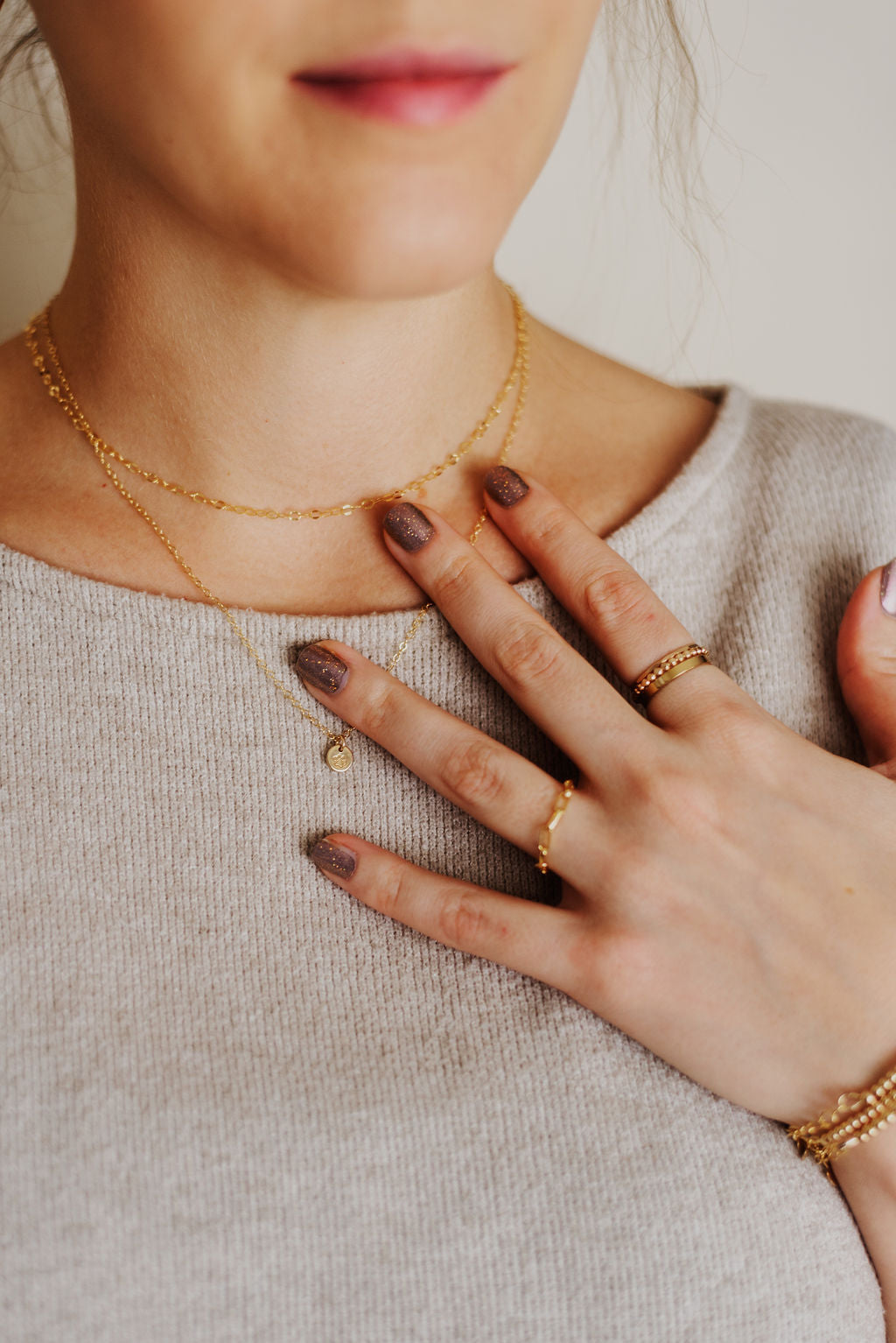 Using all Gold Filled pieces to ensure your jewelry lasts you on your every day adventures. The core is a jeweler's brass and has real solid gold pressure bonded around it. It has a permanent bond. Unlike gold plated jewelry, gold filled will not chip away. It has 100 times more gold than gold plated.