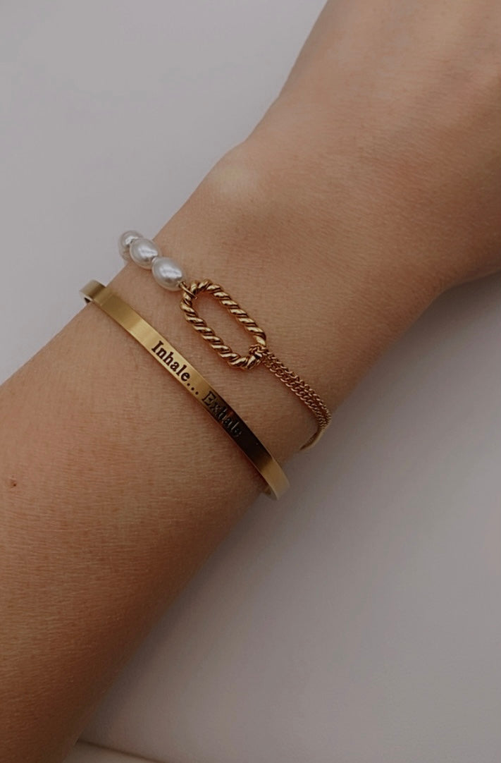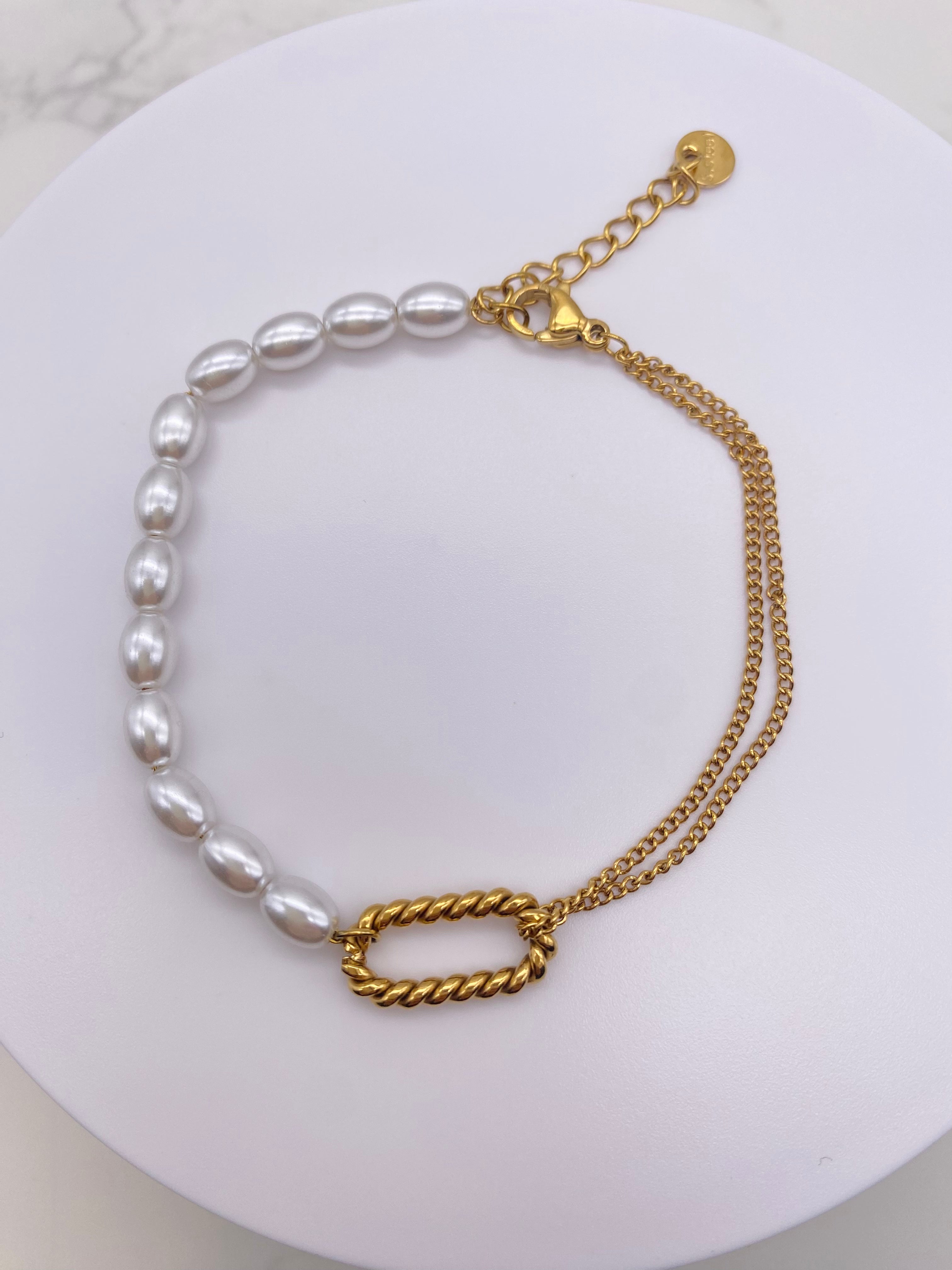 Half Glass Pearl with Twist Oval Pendant BRACELET