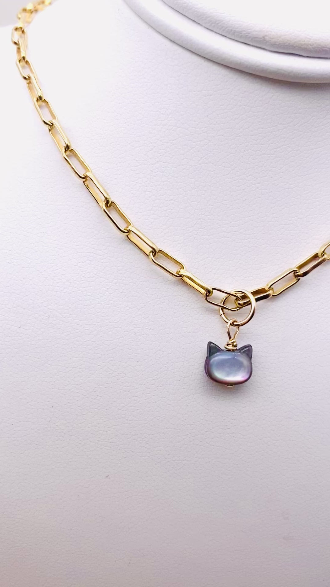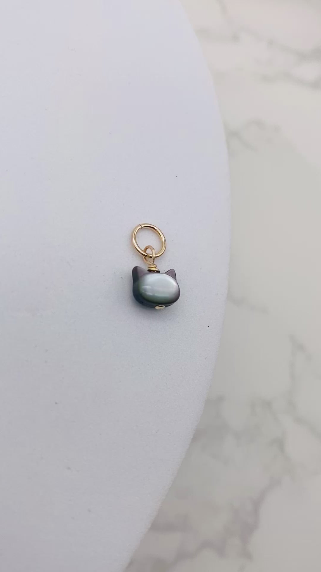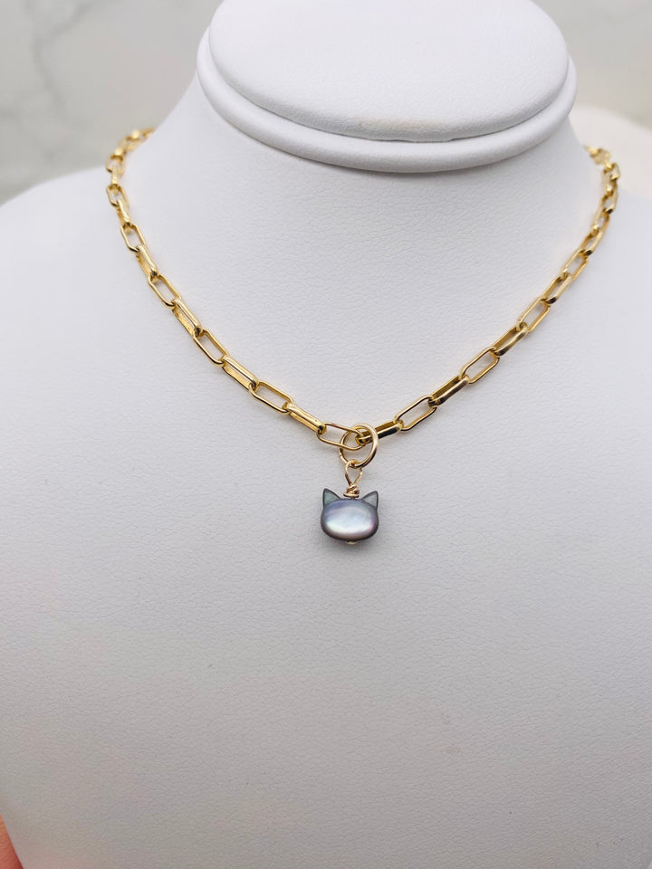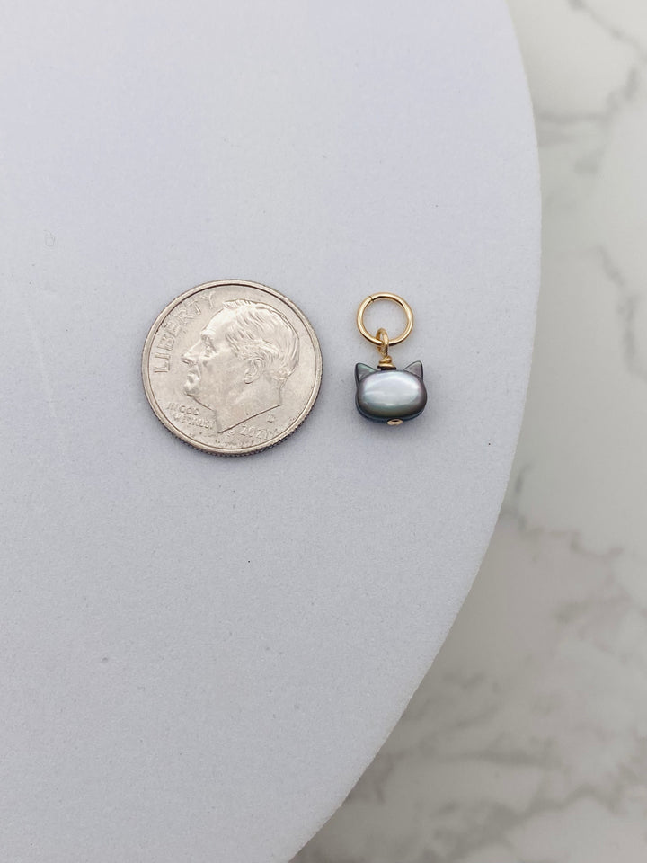 Kitty Mother of Pearl Charm - Gold Filled