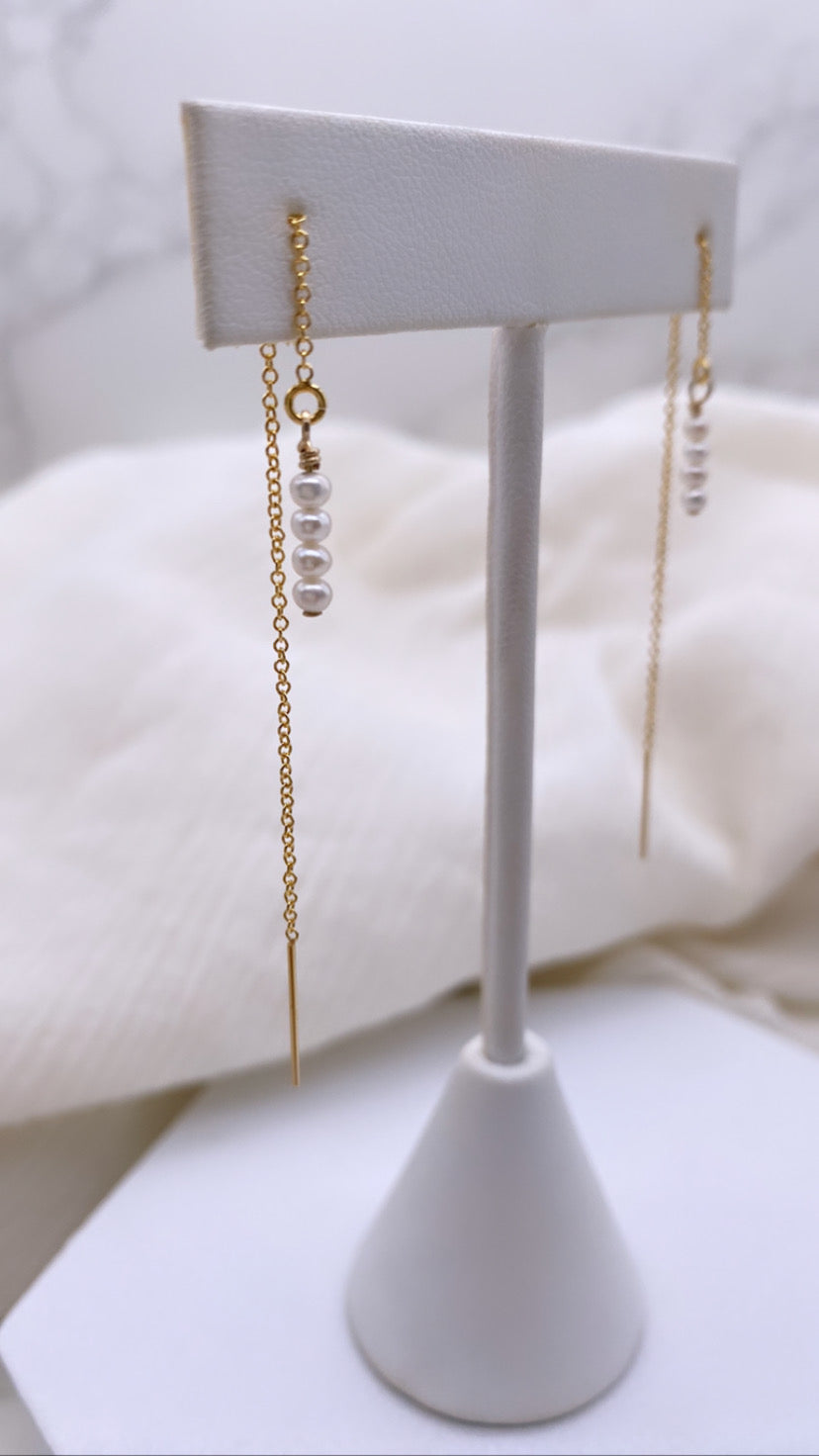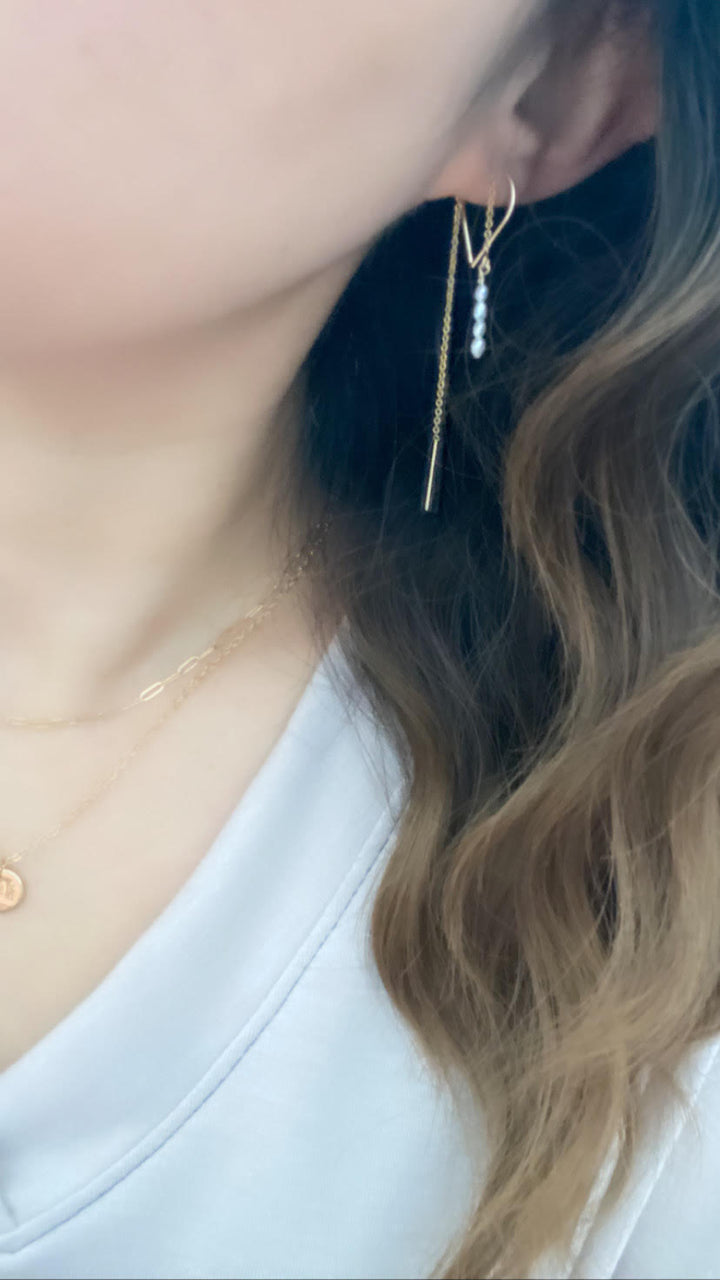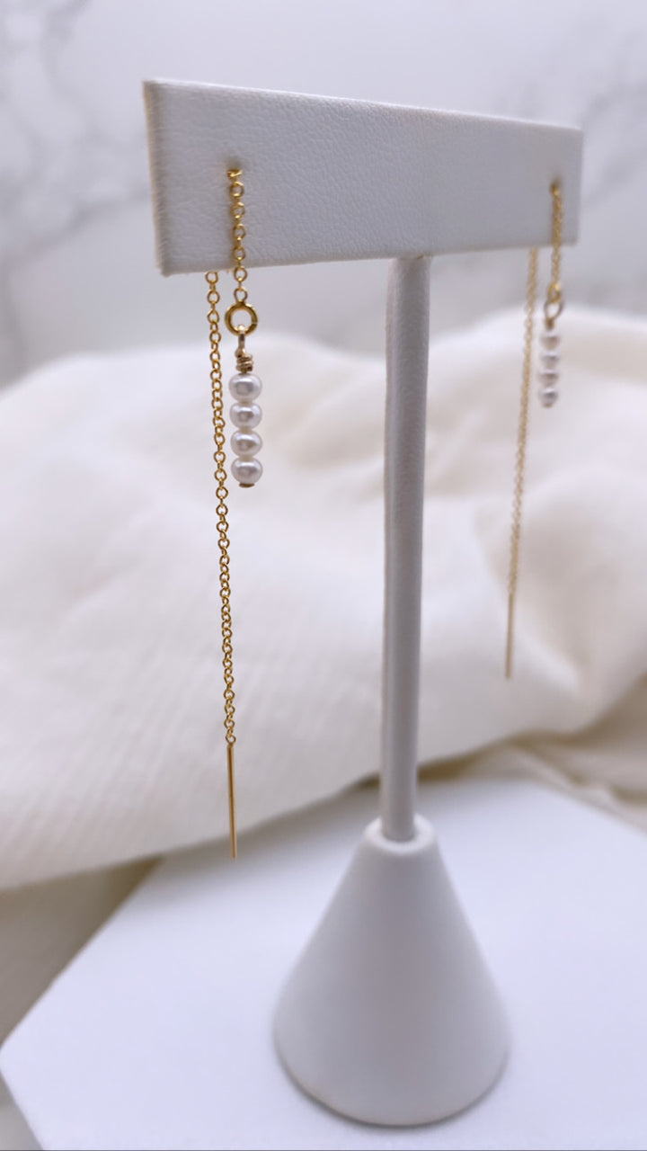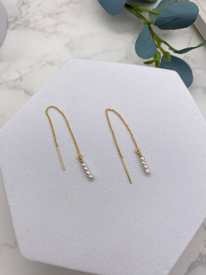 Pearl Threaders - Dainty Fresh Water Pearl Earrings