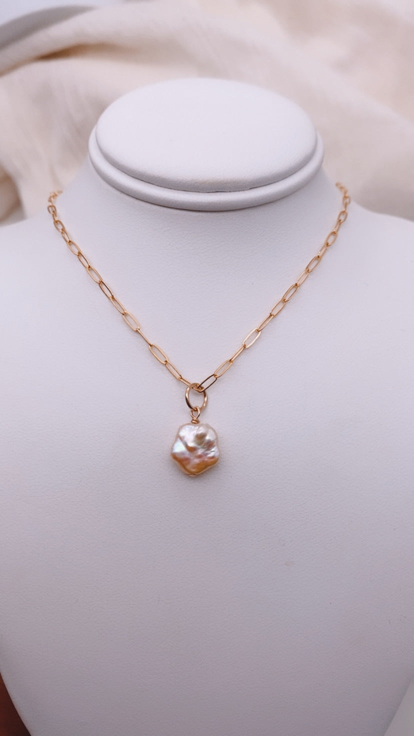 Pink Flower Mother of Pearl Charm- Gold Filled