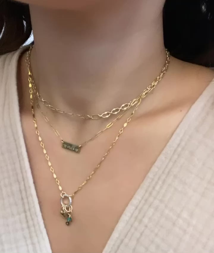 Take a piece of string and layer it around your neck. Place the string on a ruler to get your neck measurement. Please review the size of the necklace to ensure the proper fit.