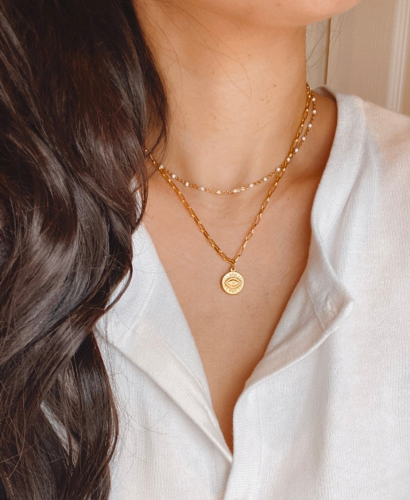Take a piece of string and layer it around your neck. Place the string on a ruler to get your neck measurement. Please review the size of the necklace to ensure the proper fit.