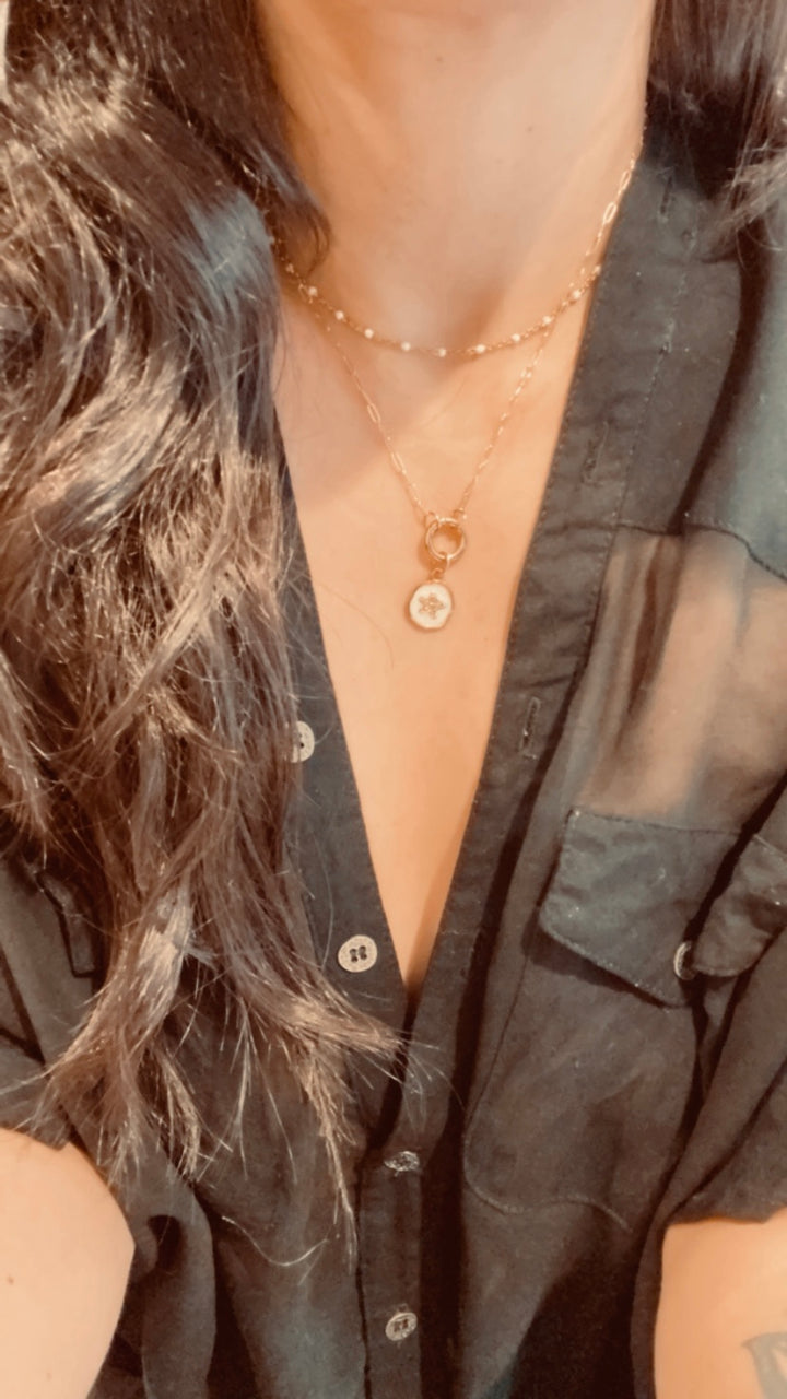 Using all Gold Filled pieces to ensure your jewelry lasts you on your every day adventures. The core is a jeweler's brass and has real solid gold pressure bonded around it. It has a permanent bond. Unlike gold plated jewelry, gold filled will not chip away. It has 100 times more gold than gold plated.