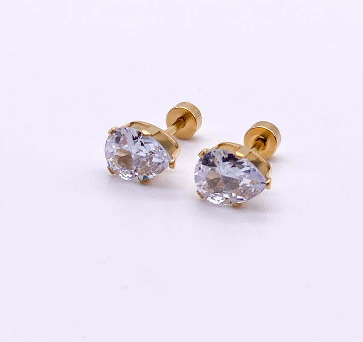 Tear Drop CZ Studs - FLAT BACK