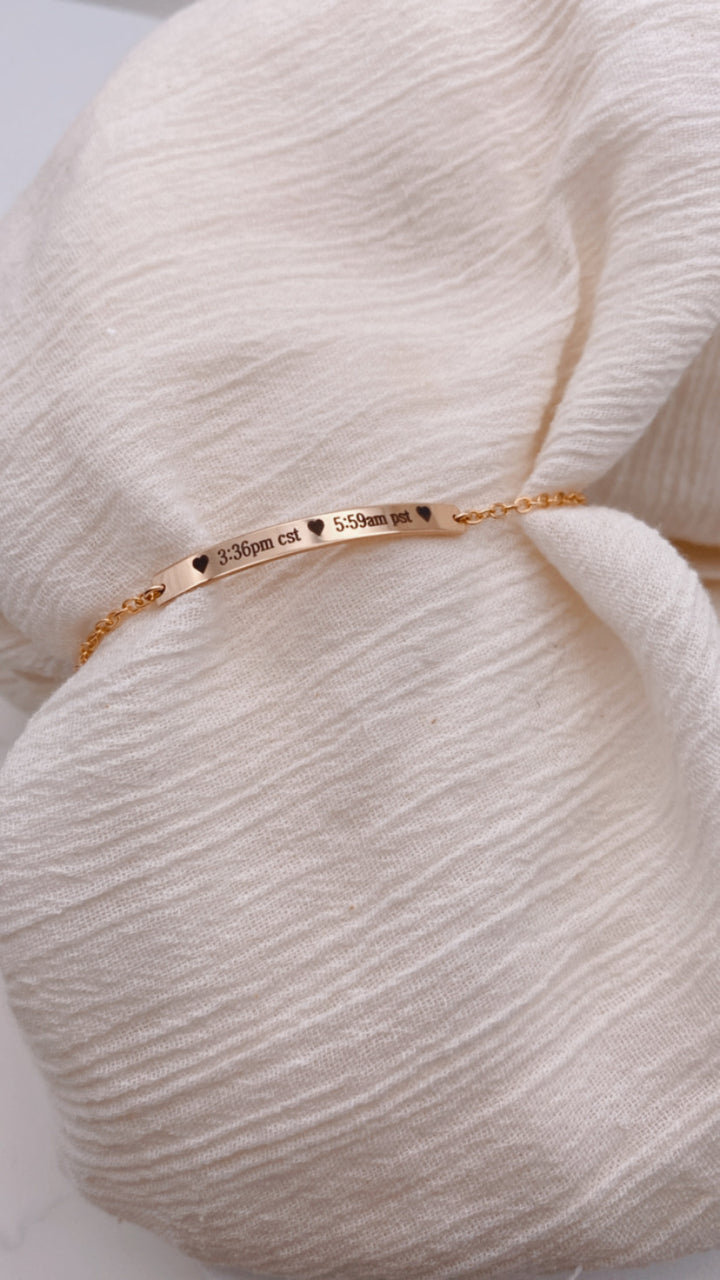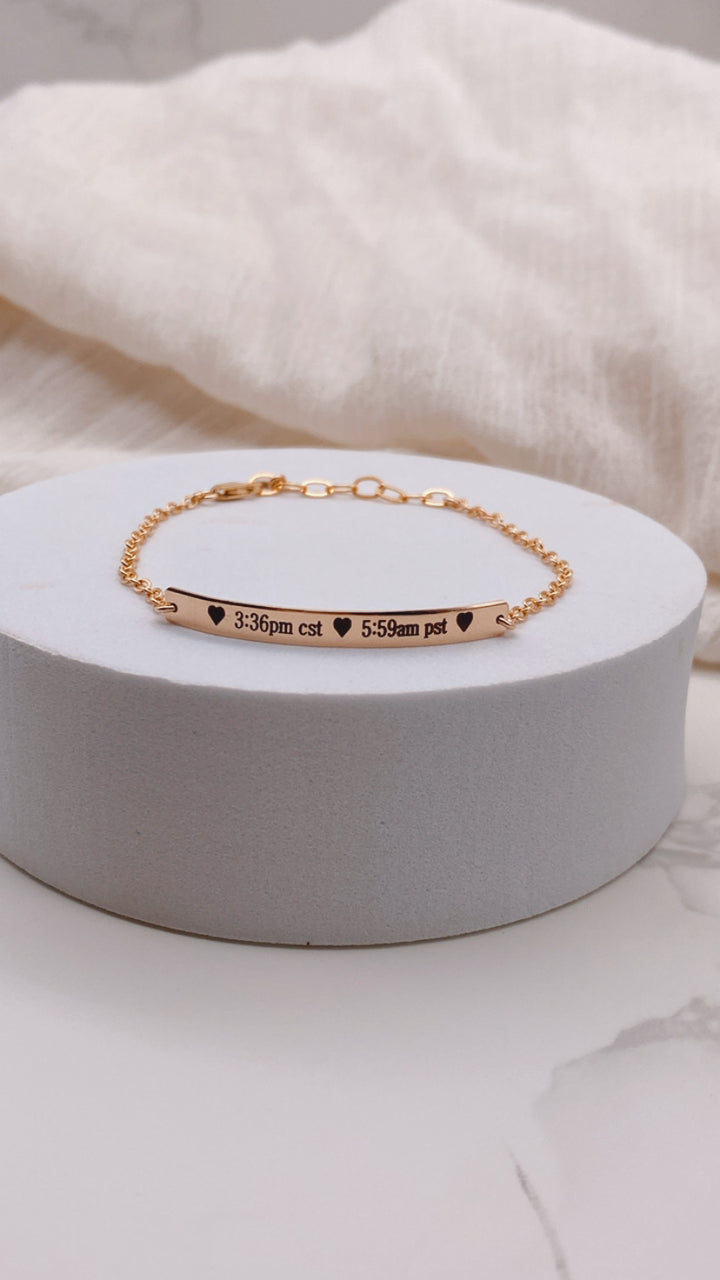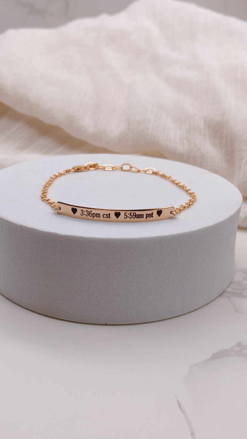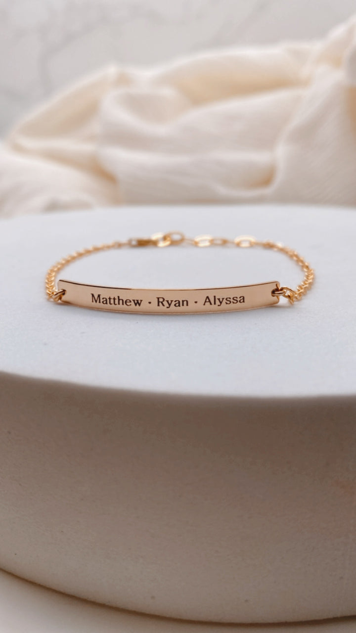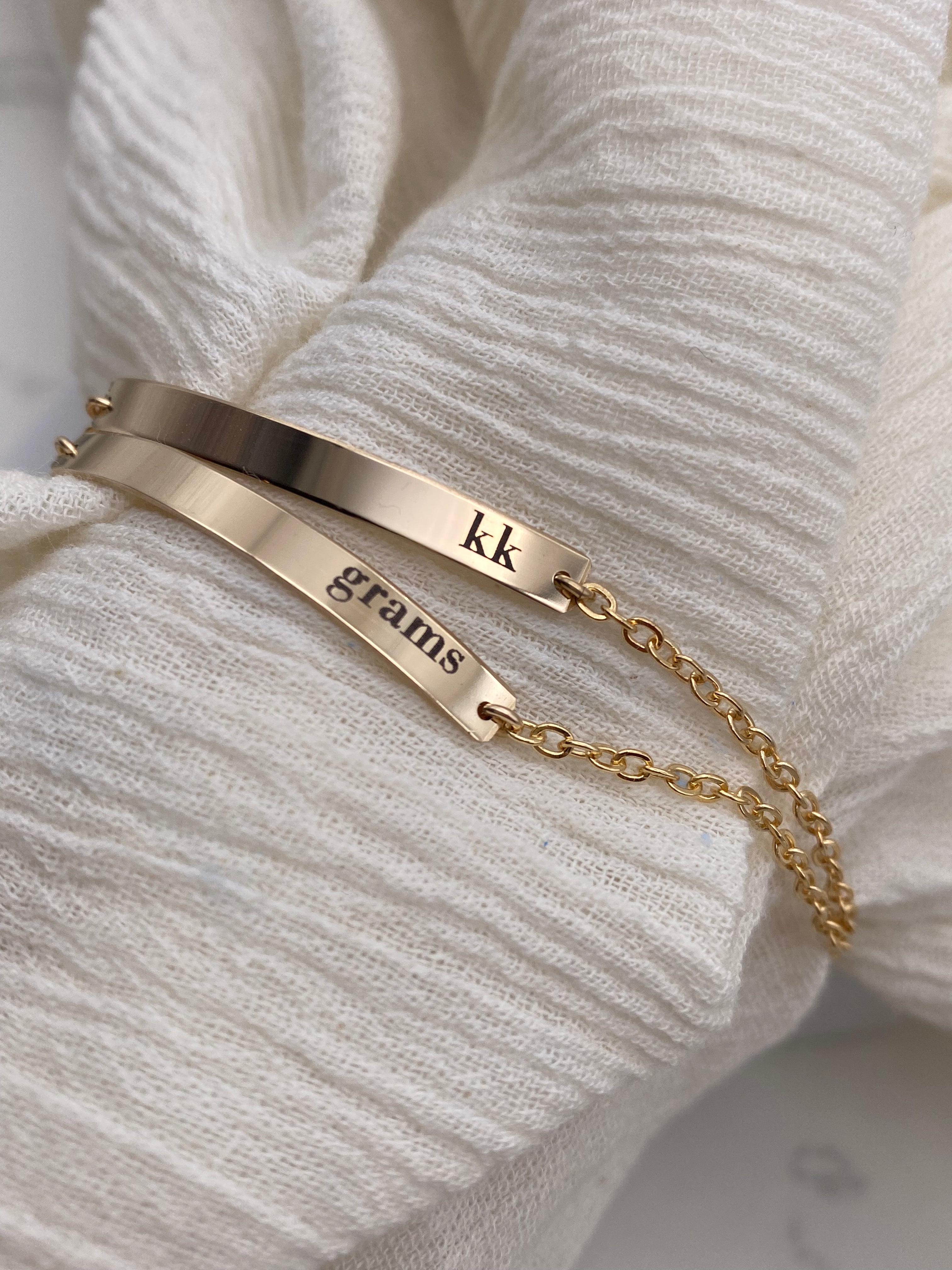 Thin Bar Bracelet - Customize - LASER ENGRAVED- Gold Filled