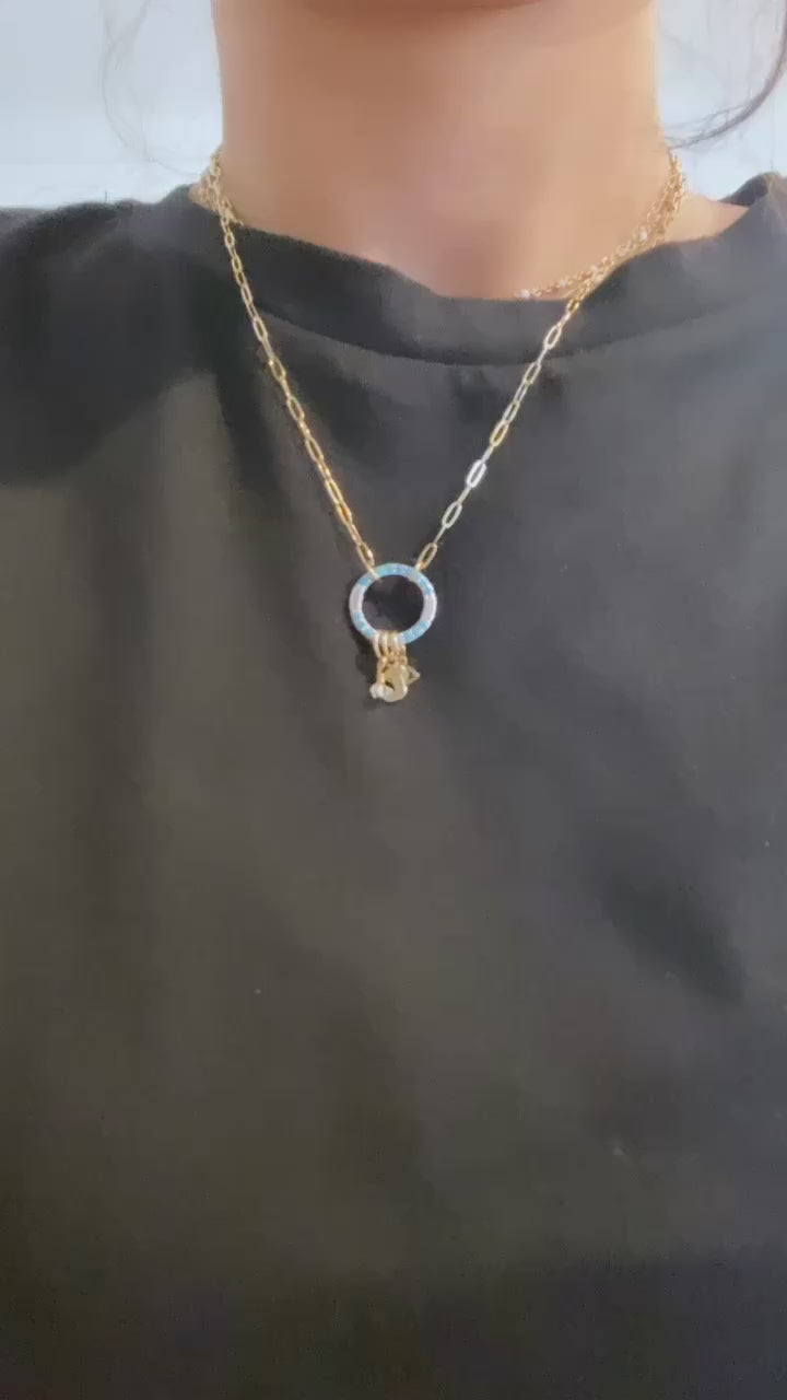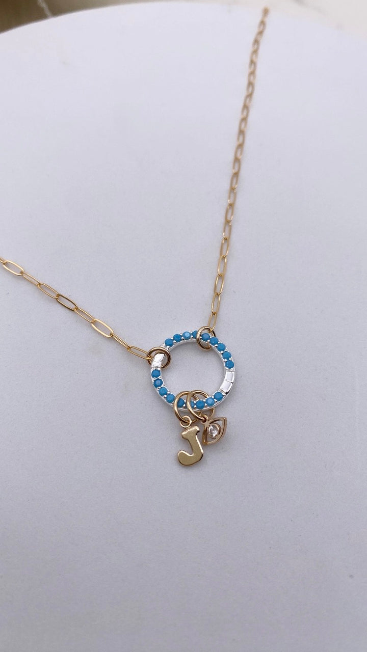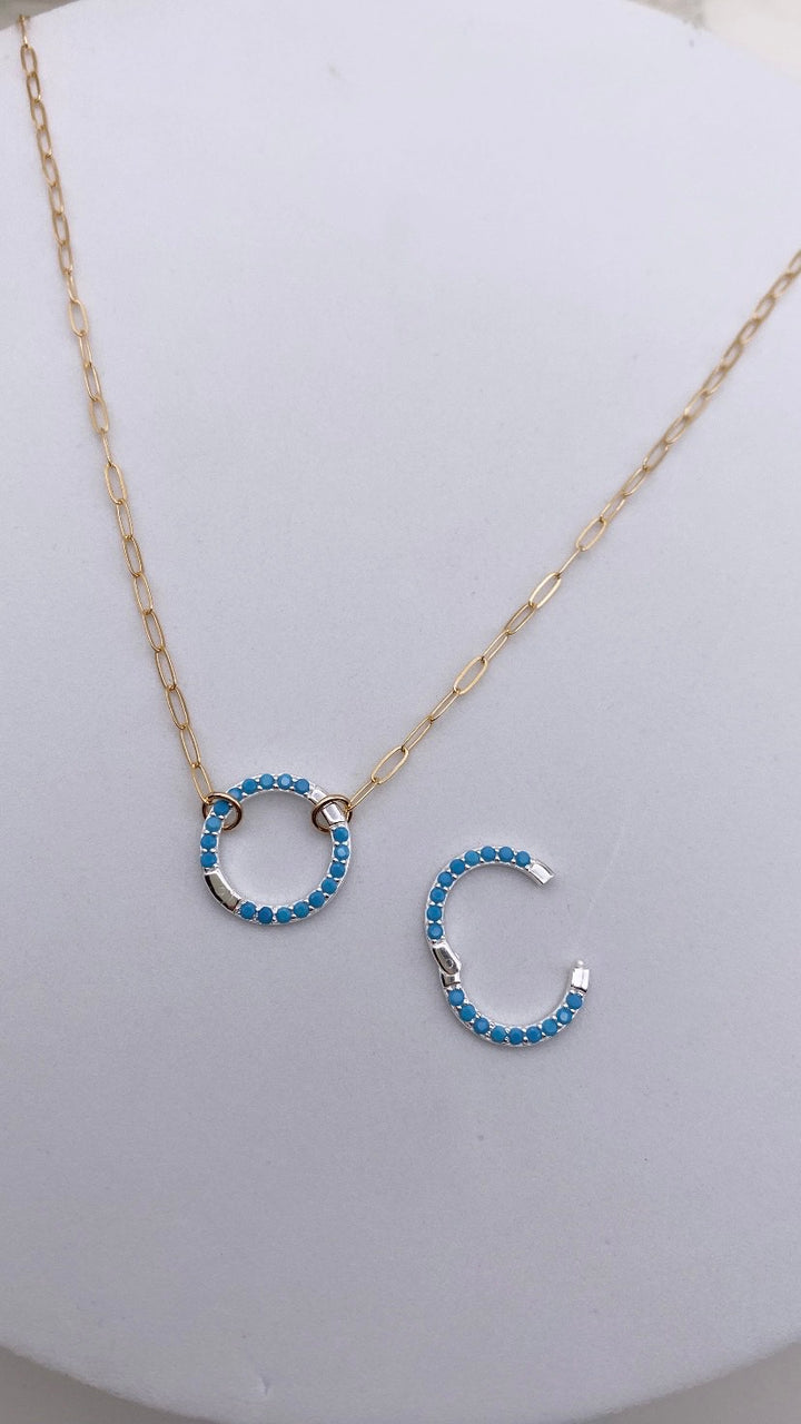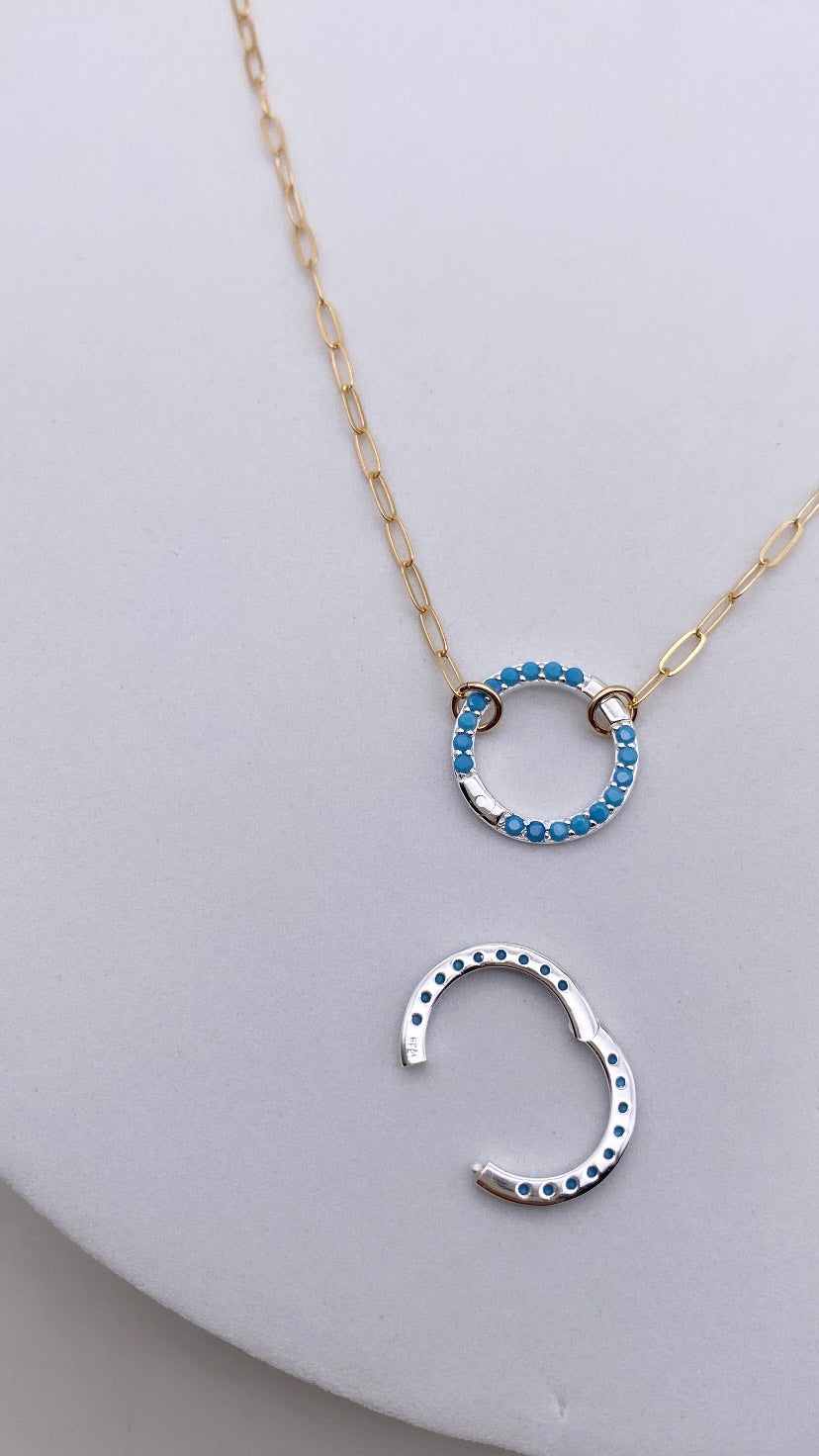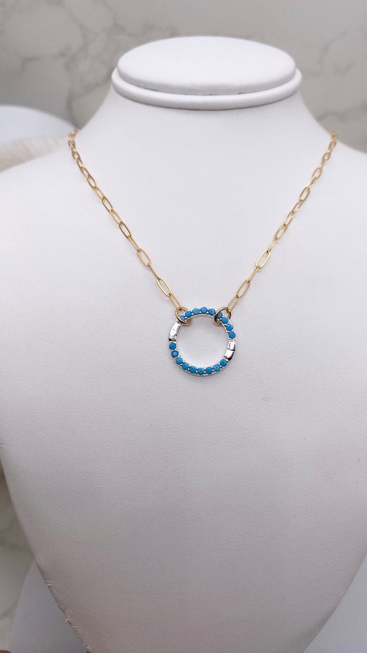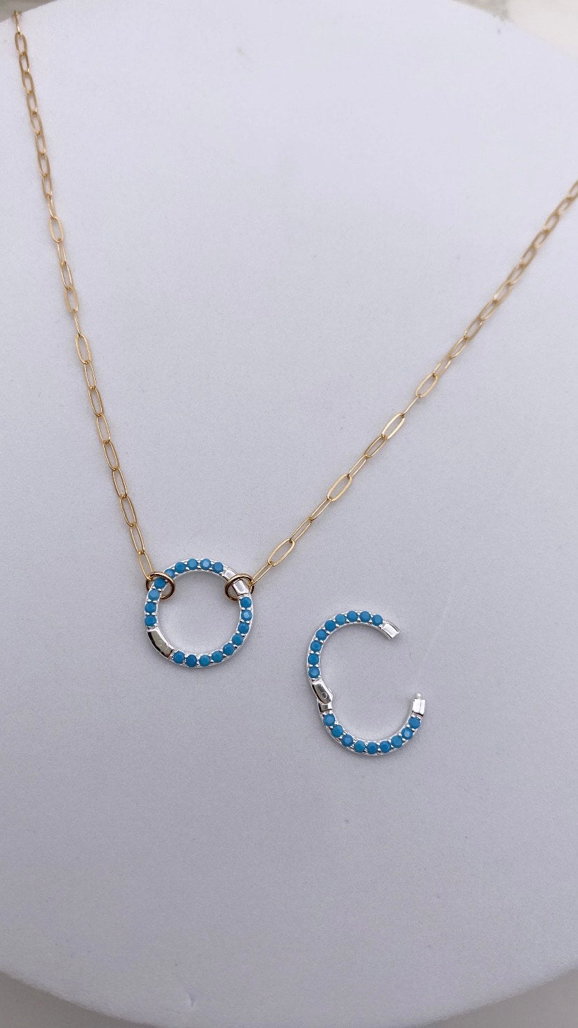 Turquoise 16MM Sterling Silver Charm Holder Necklace