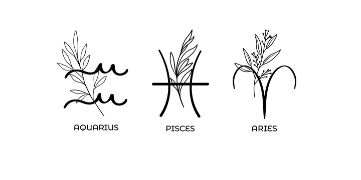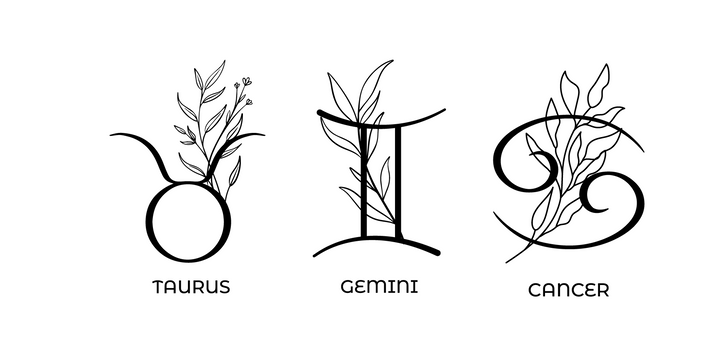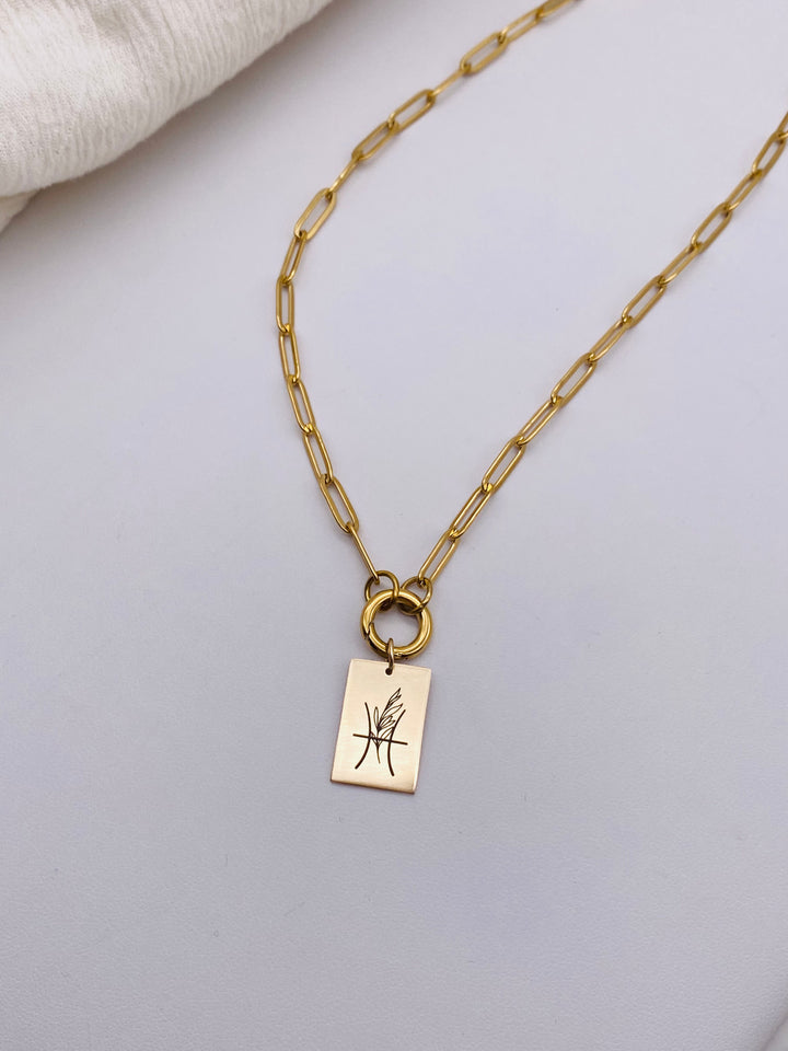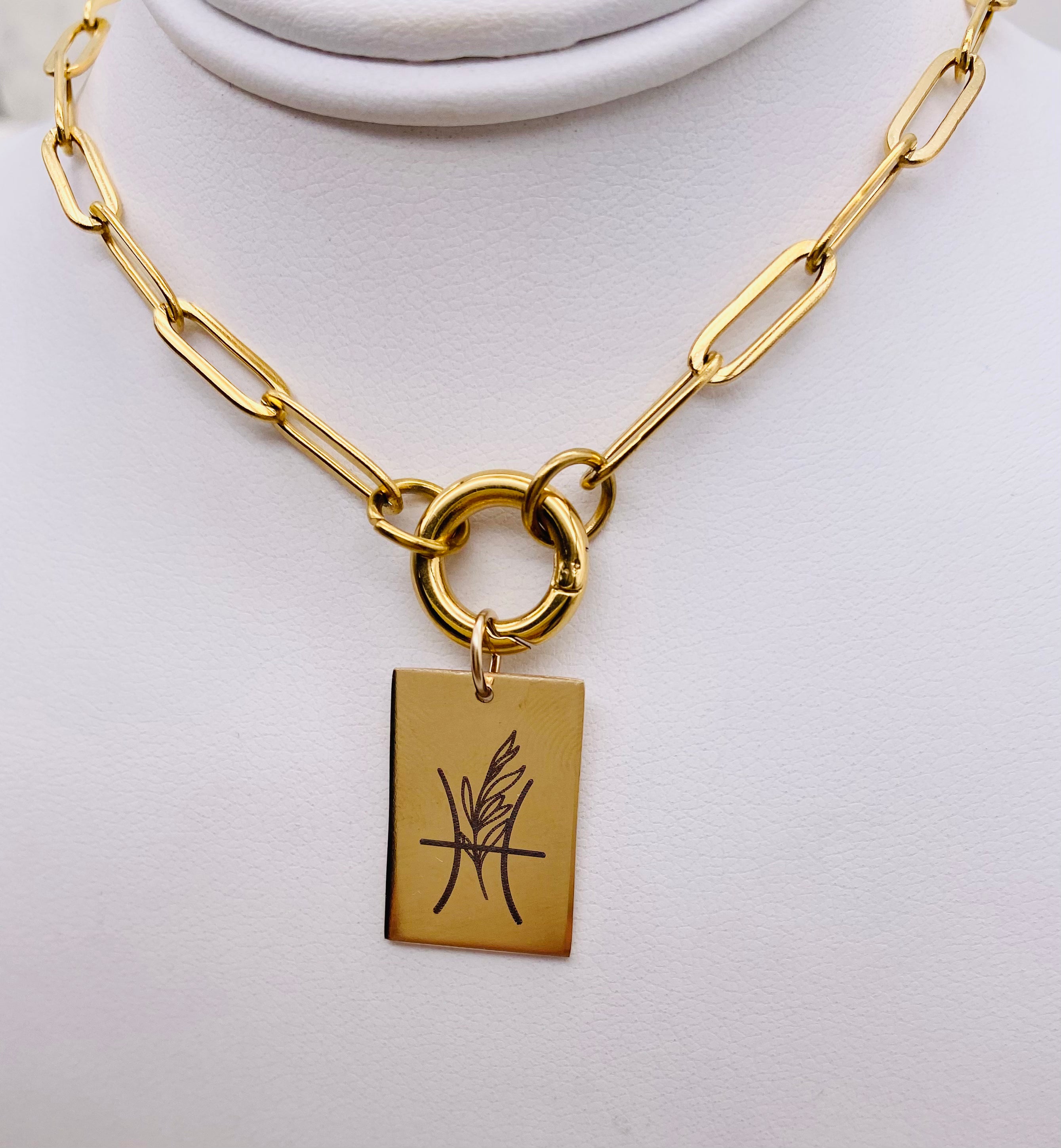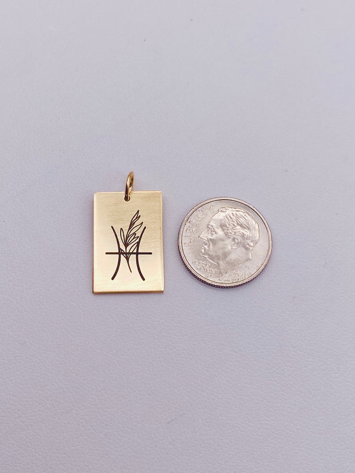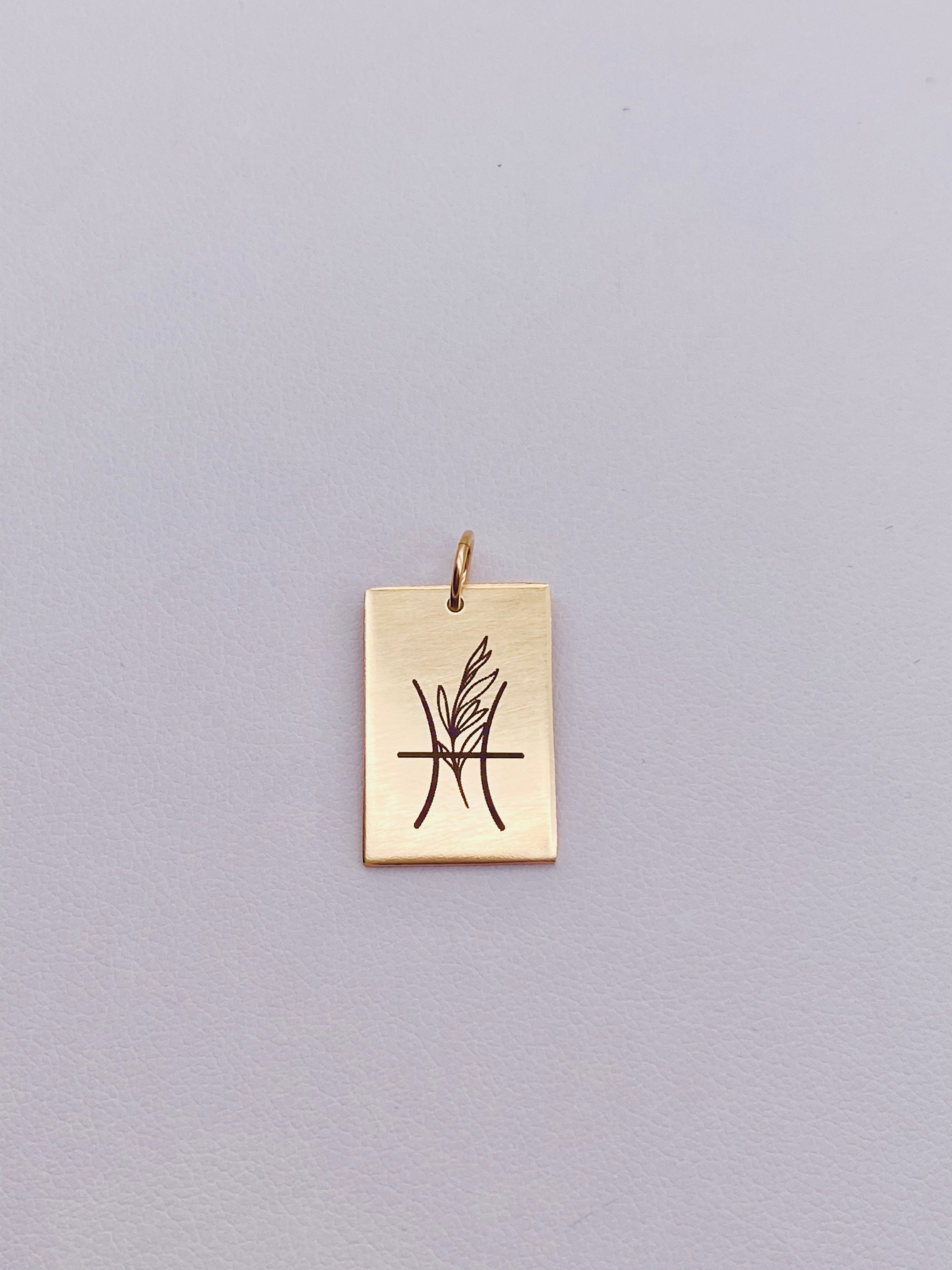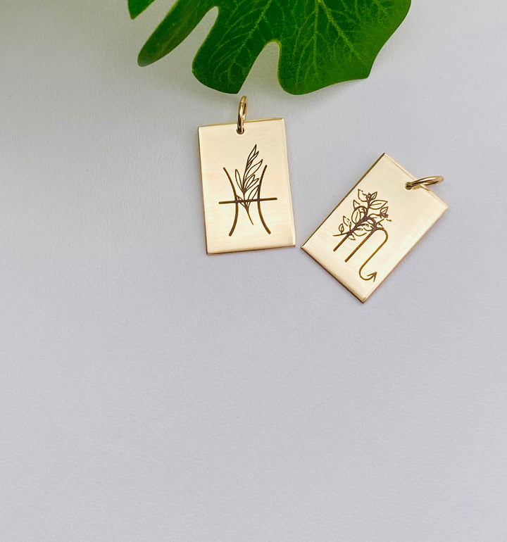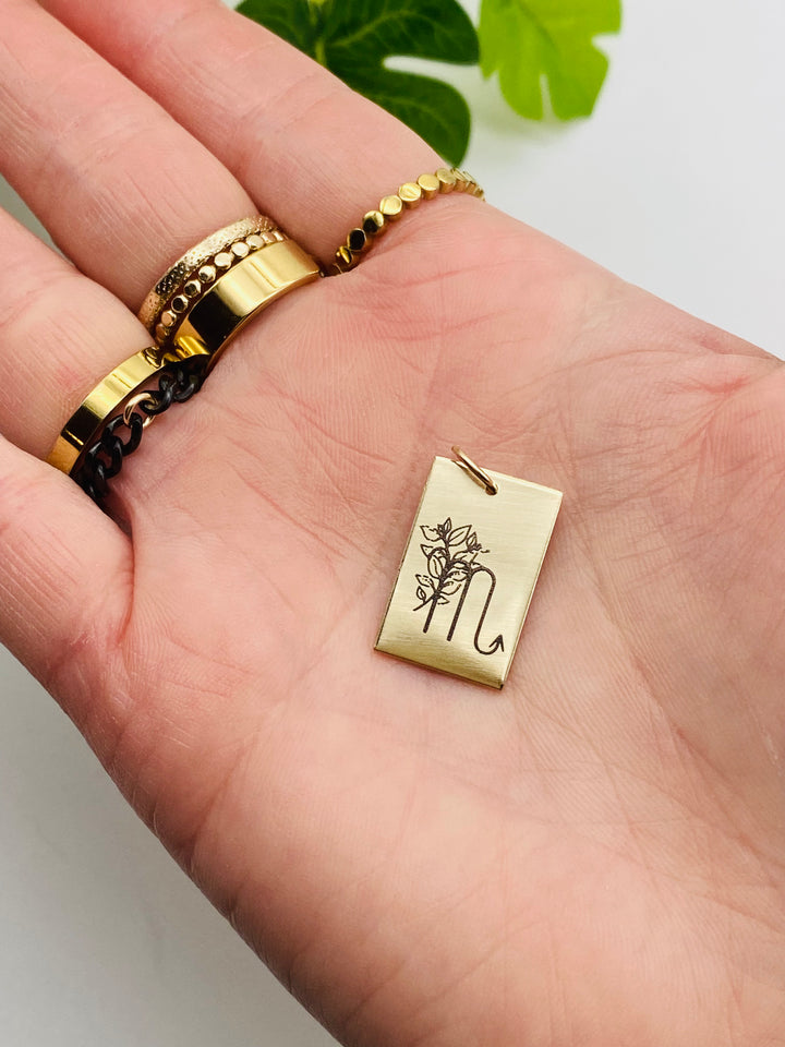 Zodiac Sign w/ leaf Rectangle Charm - Gold Filled
